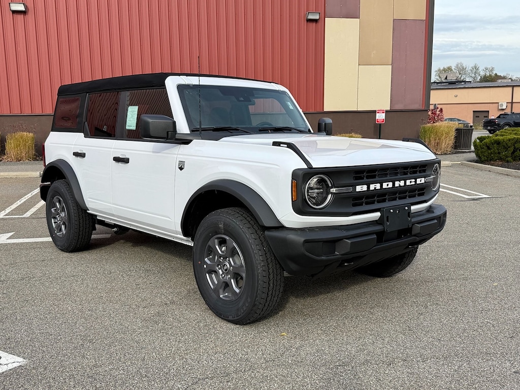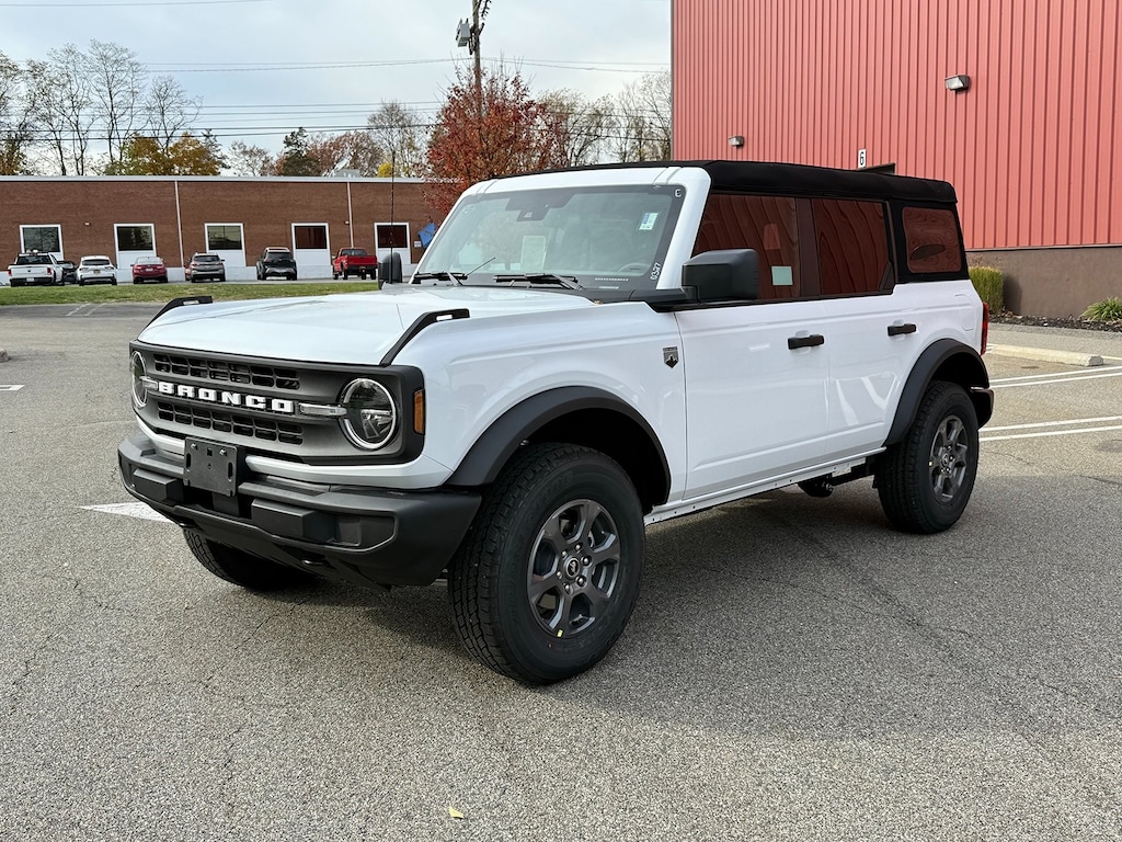 Oxford White 2025 Ford Bronco Big Bend 4WD 10-Speed Automatic 2.3L EcoBoost I-4 Fresh Oil Change, 2-Door Intelligent Access w/Lock/Unlock, 4-Wheel Disc Brakes, 4.46 Axle Ratio, 7 Speakers, ABS brakes, Air Conditioning, Alloy wheels, AM/FM radio: SiriusXM with 360L, AM/FM Stereo, Ambient Footwell Lighting, Auto High-Beam Headlamps, Auto High-beam Headlights, BLIS Blind Spot Information System, Brake assist, Cloth Bucket Seats, Compass, Connected Navigation, Delay-off headlights, Dr & Pass Illuminated Sliding Visor Vanity Mirrors, Driver door bin, Driver vanity mirror, Dual front impact airbags, Dual front side impact airbags, Dual Smart Charging USB Ports, Dual-Zone Electronic Automatic Temperature Control, Electronic Stability Control, Emergency communication system: 911 Assist, Equipment Group 222A Mid Package, Exterior Parking Camera Rear, Front & Rear Floor Liners, Front anti-roll bar, Front Bucket Seats, Front Center Armrest, Front License Plate Bracket, Front reading lights, Front Row Heated Seats, Front wheel independent suspension, Fully automatic headlights, Heated door mirrors, Illuminated entry, Integrated roll-over protection, Lane-Keeping System, Leather Shift Knob, Low tire pressure warning, Occupant sensing airbag, Outside temperature display, Overhead airbag, Overhead console, Panic alarm, Passenger door bin, Passenger vanity mirror, Power door mirrors, Power Outlet - Back Side of Center Floor Console, Power steering, Power windows, Pre-Collision Assist w/Automatic Emergency Braking, Radio data system, Rear Parking Sensors, Rear-View Camera, Remote keyless entry, Security system, SiriusXM w/360L, Speed control, Split folding rear seat, Steering wheel mounted audio controls, SYNC 4, Tachometer, Telescoping steering wheel, Tilt steering wheel, Traction control, Trip computer, Variably intermittent wipers, Wheels: 17" Carbonized Gray-Painted Aluminum.