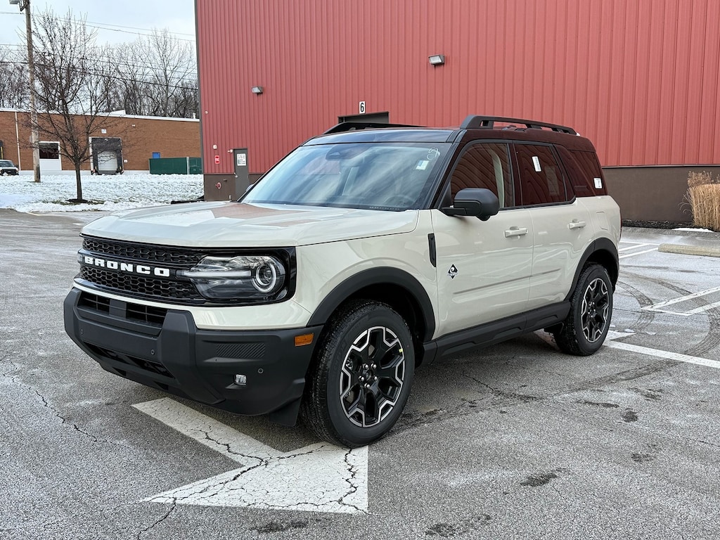Desert Sand 2025 Ford Bronco Sport Outer Banks 4WD 8-Speed Automatic 1.5L EcoBoost Fresh Oil Change, 360-Degree Camera w/Trail & Split View, 4-Wheel Disc Brakes, 6 Speakers, ABS brakes, Air Conditioning, Alloy wheels, AM/FM radio: SiriusXM, AM/FM Stereo, Auto High-beam Headlights, Auto-dimming Rear-View mirror, Automatic temperature control, B&O Sound System by Bang & Olufsen, Brake assist, Compass, Connected Navigation, Delay-off headlights, Driver door bin, Driver vanity mirror, Dual front impact airbags, Dual front side impact airbags, Electronic Stability Control, Emergency communication system: SYNC 4 911 Assist, Equipment Group 300A, Four wheel independent suspension, Front anti-roll bar, Front Bucket Seats, Front Center Armrest, Front Driver/Passenger Seat Back Map Pockets, Front dual zone A/C, Front fog lights, Front License Plate Bracket, Front Parking Sensors, Front reading lights, Fully automatic headlights, Garage door transmitter, HD Radio, Heated door mirrors, Heated front seats, Heated steering wheel, Illuminated entry, Knee airbag, Low tire pressure warning, Memory seat, Occupant sensing airbag, Outer Banks Tech Package+, Outside temperature display, Overhead airbag, Overhead console, Panic alarm, Passenger door bin, Passenger vanity mirror, Power door mirrors, Power driver seat, Power passenger seat, Power steering, Power windows, Premium Trimmed Front Bucket Seats w/Ebony/Roast, Radio data system, Rain sensing wipers, Rear anti-roll bar, Rear Parking Sensors, Rear reading lights, Rear seat center armrest, Rear window defroster, Rear window wiper, Remote keyless entry, Reverse Brake Assist, Security system, SiriusXM, Speed control, Speed-sensing steering, Speed-Sensitive Wipers, Split folding rear seat, Steering wheel mounted audio controls, SYNC 4 w/Enhanced Voice Recognition, Tachometer, Telescoping steering wheel, Tilt steering wheel, Traction control, Trip computer, Variably intermittent wipers, Wheels: 18" Ebony Black-Painted Aluminum.
