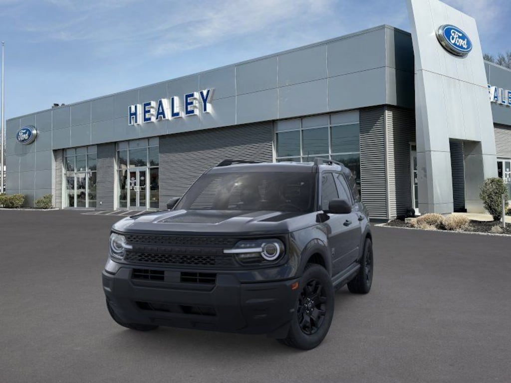 Shadow Black 2025 Ford Bronco Sport Big Bend 4WD 8-Speed Automatic 1.5L EcoBoost Fresh Oil Change, 4-Wheel Disc Brakes, 6 Speakers, ABS brakes, Air Conditioning, Alloy wheels, AM/FM radio: SiriusXM, AM/FM Stereo, Auto High-beam Headlights, Automatic temperature control, Black Appearance Package, Brake assist, Carbon Black Grille w/Black BRONCO Lettering, Cargo Mat, Cloth w/Easy-to-Clean Front Bucket Seats, Compass, Delay-off headlights, Driver door bin, Driver vanity mirror, Dual front impact airbags, Dual front side impact airbags, Electronic Stability Control, Emergency communication system: SYNC 4 911 Assist, Equipment Group 200A, Four wheel independent suspension, Front & Rear Floor Liners w/o Carpet Mats, Front anti-roll bar, Front Bucket Seats, Front Center Armrest, Front Driver/Passenger Seat Back Map Pockets, Front License Plate Bracket, Front reading lights, Fully automatic headlights, Heated door mirrors, Illuminated entry, Knee airbag, Liftgate w/Black BRONCO SPORT Lettering, Low tire pressure warning, Occupant sensing airbag, Outside temperature display, Overhead airbag, Overhead console, Painted Shadow Black Roof, Panic alarm, Passenger door bin, Passenger vanity mirror, Power door mirrors, Power steering, Power windows, Premium Trimmed Htd Fr Sport Contour Bucket Seats, Radio data system, Rear anti-roll bar, Rear Parking Sensors, Rear reading lights, Rear seat center armrest, Rear window defroster, Rear window wiper, Remote keyless entry, Security system, SiriusXM, Speed control, Speed-sensing steering, Speed-Sensitive Wipers, Split folding rear seat, Steering wheel mounted audio controls, SYNC 4 w/Enhanced Voice Recognition, Tachometer, Telescoping steering wheel, Tilt steering wheel, Traction control, Trip computer, Variably intermittent wipers, Wheels: 17" Carbonized Gray-Painted Aluminum, Wheels: 17" Matte Black-Painted Aluminum.