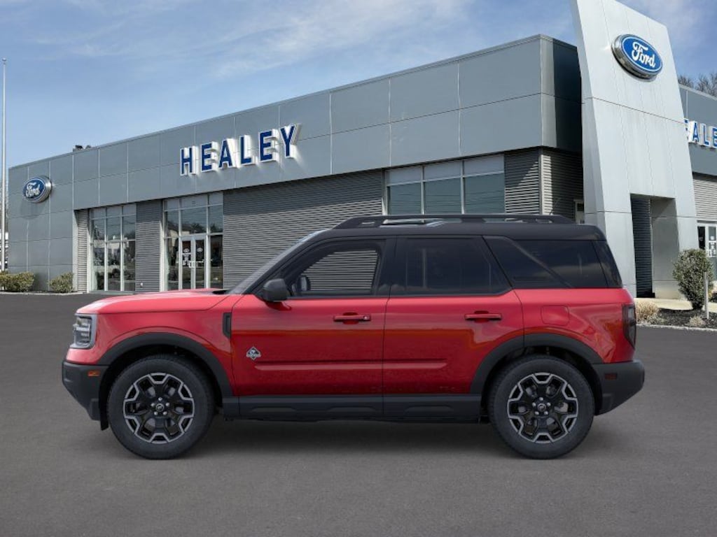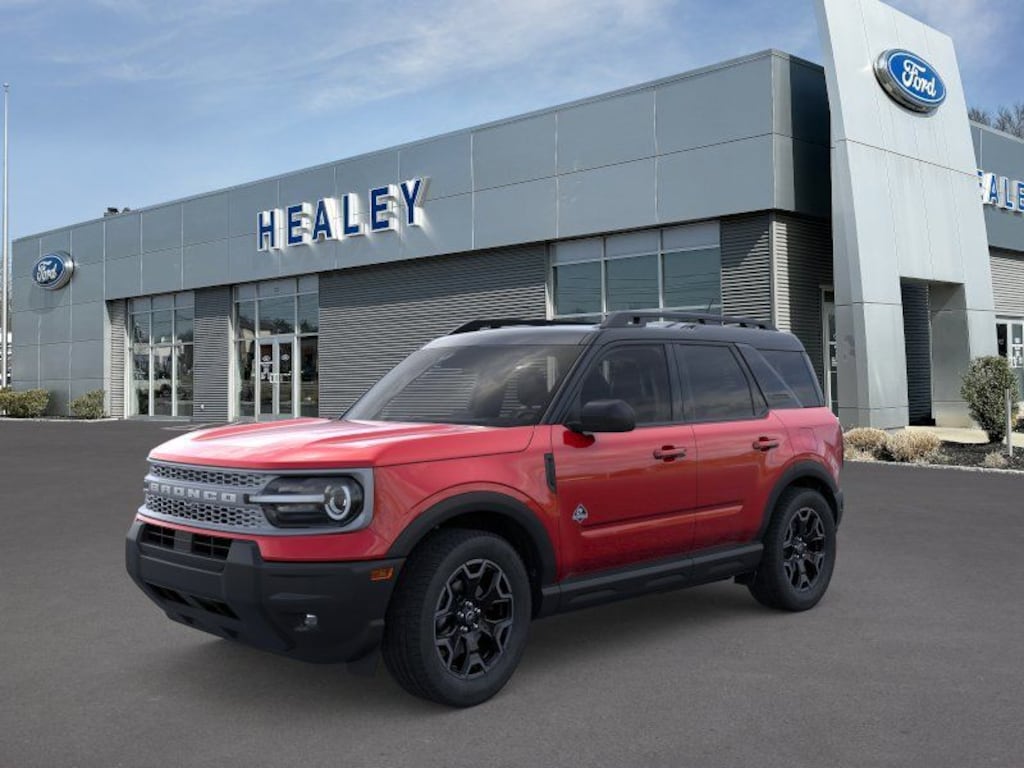 Ruby Red Metallic Tinted Clearcoat 2025 Ford Bronco Sport Outer Banks 4WD 8-Speed Automatic 1.5L EcoBoost Fresh Oil Change, 4-Wheel Disc Brakes, 6 Speakers, ABS brakes, Air Conditioning, Alloy wheels, AM/FM radio: SiriusXM, AM/FM Stereo, Auto High-beam Headlights, Auto-dimming Rear-View mirror, Automatic temperature control, Brake assist, Cargo Management System (Shelf/Divider/Table), Cargo Mat, Compass, Delay-off headlights, Driver door bin, Driver vanity mirror, Dual front impact airbags, Dual front side impact airbags, Electronic Stability Control, Emergency communication system: SYNC 4 911 Assist, Equipment Group 300A, Four wheel independent suspension, Front & Rear Floor Liners w/o Carpet Mats, Front anti-roll bar, Front Bucket Seats, Front Center Armrest, Front Driver/Passenger Seat Back Map Pockets, Front dual zone A/C, Front fog lights, Front License Plate Bracket, Front reading lights, Fully automatic headlights, Garage door transmitter, Heated door mirrors, Heated front seats, Heated steering wheel, Illuminated entry, Knee airbag, Low tire pressure warning, Memory seat, Occupant sensing airbag, Outside temperature display, Overhead airbag, Overhead console, Panic alarm, Passenger door bin, Passenger vanity mirror, Power door mirrors, Power driver seat, Power passenger seat, Power steering, Power windows, Premium Trimmed Front Bucket Seats w/Ebony/Roast, Premium Trimmed Front Bucket Seats w/Platinum Blue, Radio data system, Rain sensing wipers, Rear anti-roll bar, Rear Parking Sensors, Rear reading lights, Rear seat center armrest, Rear window defroster, Rear window wiper, Remote keyless entry, Security system, SiriusXM, Speed control, Speed-sensing steering, Speed-Sensitive Wipers, Split folding rear seat, Steering wheel mounted audio controls, SYNC 4 w/Enhanced Voice Recognition, Tachometer, Telescoping steering wheel, Tilt steering wheel, Traction control, Trip computer, Variably intermittent wipers, Wheels: 18" Ebony Black-Painted Aluminum.