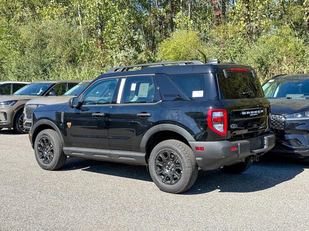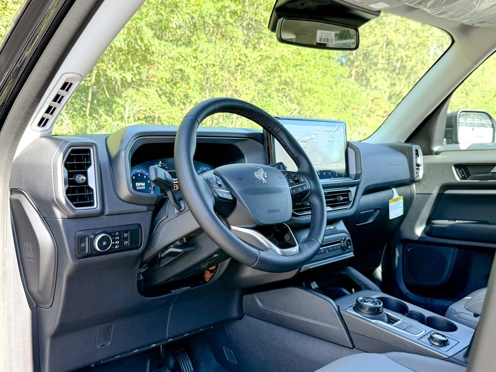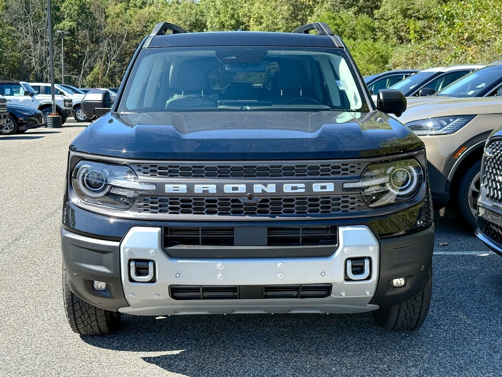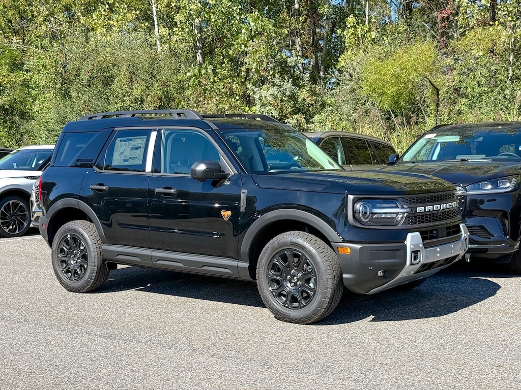 Shadow Black 2025 Ford Bronco Sport Badlands 4WD 8-Speed Automatic EcoBoost 2.0L I4 GTDi DOHC Turbocharged VCT Dealer Detailed, Oil Change, Dealer Inspected, 4-Wheel Disc Brakes, 6 Speakers, ABS brakes, Air Conditioning, Alloy wheels, AM/FM radio: SiriusXM, AM/FM Stereo, Auto High-beam Headlights, Auto-dimming Rear-View mirror, Automatic temperature control, B&O Sound System by Bang & Olufsen, Badlands Tech Package, Brake assist, Cargo Management System (Shelf/Divider/Table), Cargo Mat, Compass, Connected Navigation, Delay-off headlights, Driver door bin, Driver vanity mirror, Dual front impact airbags, Dual front side impact airbags, Electronic Stability Control, Emergency communication system: SYNC 4 911 Assist, Equipment Group 400A, Four wheel independent suspension, Front anti-roll bar, Front Bucket Seats, Front Center Armrest, Front fog lights, Front License Plate Bracket, Front reading lights, Fully automatic headlights, Garage door transmitter, HD Radio, Heated door mirrors, Heated front seats, Heated steering wheel, Illuminated entry, Knee airbag, Leather Trimmed Front Bucket Seats, Low tire pressure warning, Memory seat, Occupant sensing airbag, Outside temperature display, Overhead airbag, Overhead console, Panic alarm, Passenger door bin, Passenger vanity mirror, Power door mirrors, Power driver seat, Power Moonroof, Power passenger seat, Power steering, Power windows, Radio data system, Rear anti-roll bar, Rear reading lights, Rear seat center armrest, Rear window defroster, Rear window wiper, Remote keyless entry, Security system, SiriusXM, Speed control, Speed-sensing steering, Speed-Sensitive Wipers, Split folding rear seat, Steering wheel mounted audio controls, SYNC 4 w/Enhanced Voice Recognition, Tachometer, Telescoping steering wheel, Tilt steering wheel, Traction control, Trip computer, Variably intermittent wipers, Wheels: 17" Matte Black-Painted Aluminum.