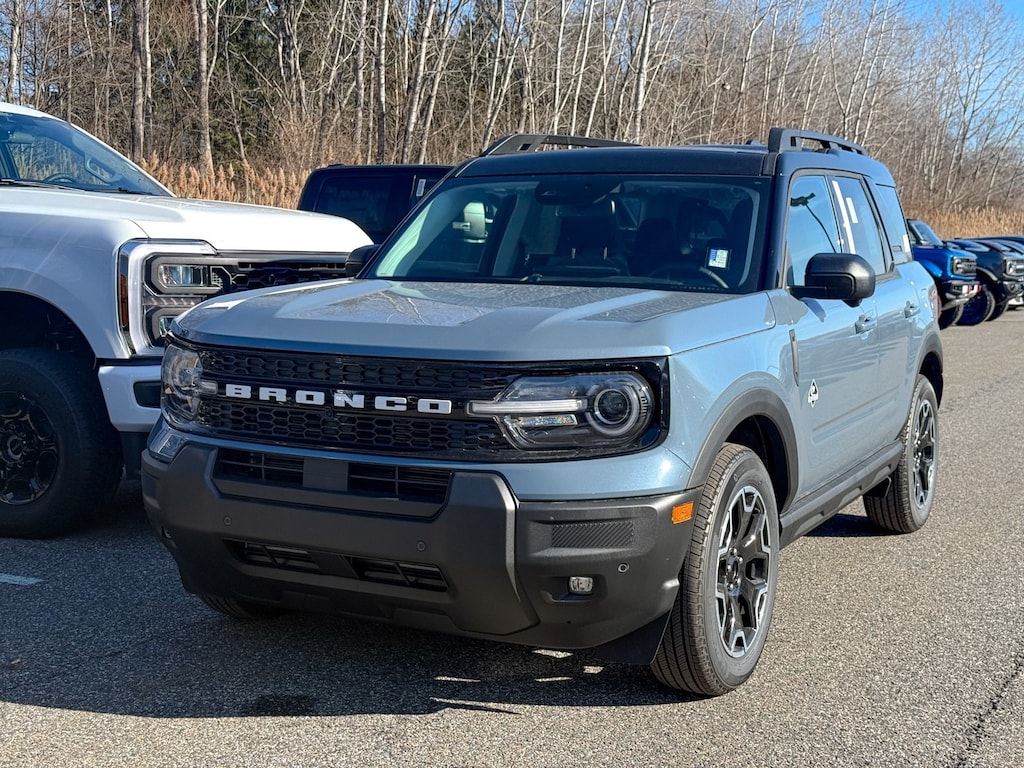 Azure Gray Metallic Tri-Coat 2025 Ford Bronco Sport Outer Banks 4WD 8-Speed Automatic 1.5L EcoBoost Dealer Detailed, Oil Change, Dealer Inspected, 2nd Row Carpeted Seatback, 360-Degree Camera w/Trail & Split View, 4-Wheel Disc Brakes, 6 Speakers, ABS brakes, Air Conditioning, Alloy wheels, AM/FM radio: SiriusXM, AM/FM Stereo, Auto High-beam Headlights, Auto-dimming Rear-View mirror, Automatic temperature control, B&O Sound System by Bang & Olufsen, Brake assist, Compass, Connected Navigation, Delay-off headlights, Driver door bin, Driver vanity mirror, Dual front impact airbags, Dual front side impact airbags, Electronic Stability Control, Emergency communication system: SYNC 4 911 Assist, Equipment Group 300A, Four wheel independent suspension, Front anti-roll bar, Front Bucket Seats, Front Center Armrest, Front Driver/Passenger Seat Back Map Pockets, Front dual zone A/C, Front fog lights, Front License Plate Bracket, Front Parking Sensors, Front reading lights, Fully automatic headlights, Garage door transmitter, HD Radio, Heated door mirrors, Heated front seats, Heated steering wheel, Illuminated entry, Knee airbag, Low tire pressure warning, Memory seat, Occupant sensing airbag, Outer Banks Tech Package+, Outside temperature display, Overhead airbag, Overhead console, Panic alarm, Passenger door bin, Passenger vanity mirror, Power door mirrors, Power driver seat, Power Moonroof, Power passenger seat, Power steering, Power windows, Premium Trimmed Front Bucket Seats w/Ebony/Roast, Premium Trimmed Front Bucket Seats w/Platinum Blue, Radio data system, Rain sensing wipers, Rear anti-roll bar, Rear Parking Sensors, Rear reading lights, Rear seat center armrest, Rear window defroster, Rear window wiper, Remote keyless entry, Reverse Brake Assist, Security system, SiriusXM, Speed control, Speed-sensing steering, Speed-Sensitive Wipers, Split folding rear seat, Steering wheel mounted audio controls, SYNC 4 w/Enhanced Voice Recognition, Tachometer, Telescoping steering wheel, Tilt steering wheel, Traction control, Trip computer, Variably intermittent wipers, Wheels: 18" Ebony Black-Painted Aluminum.