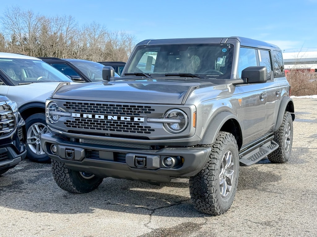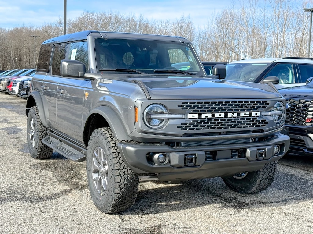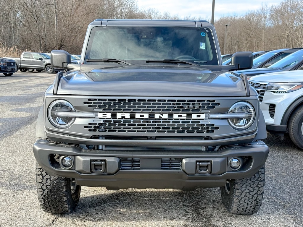 Carbonized Gray Metallic 2025 Ford Bronco Badlands 4WD 10-Speed Automatic 2.7L EcoBoost V6 Dealer Detailed, Oil Change, Dealer Inspected, 2-Door Intelligent Access w/Lock/Unlock, 4-Wheel Disc Brakes, 4.7 Axle Ratio, 7 Speakers, ABS brakes, Air Conditioning, Alloy wheels, AM/FM radio: SiriusXM with 360L, AM/FM Stereo, Ambient Footwell Lighting, Auto High-Beam Headlamps, Auto High-beam Headlights, Auto-dimming Rear-View mirror, BLIS Blind Spot Information System, Brake assist, Compass, Connected Navigation, Delay-off headlights, Door Storage Bags, Dr & Pass Illuminated Sliding Visor Vanity Mirrors, Driver door bin, Driver vanity mirror, Dual front impact airbags, Dual front side impact airbags, Dual Smart Charging USB Ports, Dual-Zone Electronic Automatic Temperature Control, Electronic Stability Control, Emergency communication system: 911 Assist, Equipment Group 332A Mid Package, Exterior Parking Camera Rear, Front anti-roll bar, Front Bucket Seats, Front Center Armrest, Front fog lights, Front License Plate Bracket, Front reading lights, Front Row Heated Seats, Front wheel independent suspension, Fully automatic headlights, Hard Top Sound Deadening Headliner, Heated door mirrors, Heated front seats, Heated steering wheel, Illuminated entry, Integrated roll-over protection, Internet access capable: FordPass Connect, Lane-Keeping System, Leather Shift Knob, Leather-Trimmed/Vinyl Bucket Seats, Low tire pressure warning, Marine Grade Vinyl Heated Bucket Seats, Occupant sensing airbag, Outside temperature display, Overhead airbag, Overhead console, Panic alarm, Passenger door bin, Passenger vanity mirror, Power door mirrors, Power Outlet - Back Side of Center Floor Console, Power steering, Power windows, Pre-Collision Assist w/Automatic Emergency Braking, Radio data system, Raptor-Style Running Board, Rear Parking Sensors, Rear-View Camera, Rear-Window Defroster & Washer, Remote keyless entry, Security system, Shadow Black Painted Hard Top, SiriusXM w/360L, Speed control, Split folding rear seat, Steering wheel mounted audio controls, SYNC 4, Tachometer, Telescoping steering wheel, Tilt steering wheel, Traction control, Trip computer, Variably intermittent wipers, Voltmeter, Wheels: 17" Carbonized Gray-Painted Aluminum.
