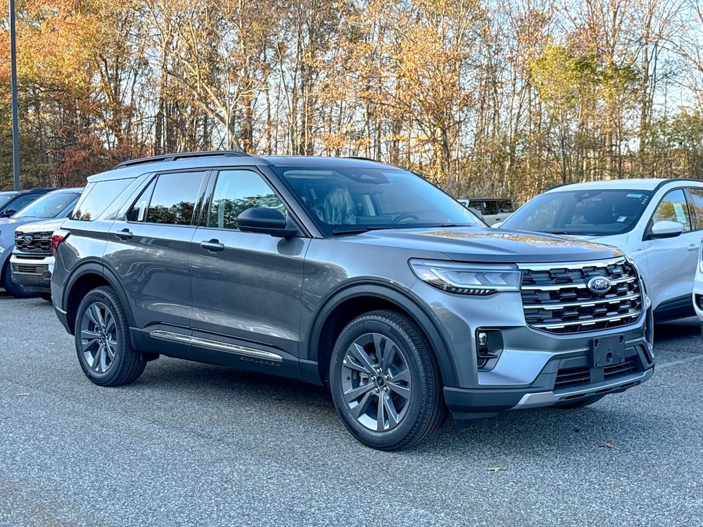 Carbonized Gray Metallic 2025 Ford Explorer Active 4WD 10-Speed Automatic 2.3L EcoBoost I-4 Dealer Detailed, Oil Change, Dealer Inspected, 2nd Row 35/30/35 Bench w/E-Z Entry & Armrest, 3.58 Non-Limited Slip Rear Axle, 3rd row seats: bench, 4-Wheel Disc Brakes, 6 Speakers, ABS brakes, Active Comfort Package, Air Conditioning, Alloy wheels, AM/FM radio: SiriusXM with 360L, AM/FM Stereo, Apple CarPlay/Android Auto, Auto High-beam Headlights, Automatic temperature control, Brake assist, Bumpers: body-color, Compass, Delay-off headlights, Driver door bin, Driver vanity mirror, Dual front impact airbags, Dual front side impact airbags, Electronic Stability Control, Emergency communication system: 911 Assist, Equipment Group 200A Standard Package, Exterior Parking Camera Rear, Four wheel independent suspension, Front anti-roll bar, Front Bucket Seats, Front Center Armrest, Front dual zone A/C, Front Fascia, Front License Plate Bracket, Front reading lights, Fully automatic headlights, Heated ActiveX Seating Material Captain's Chairs, Heated door mirrors, Heated front seats, Heated Steering Wheel, Illuminated entry, Knee airbag, Leather steering wheel, Low tire pressure warning, Navigation System, Occupant sensing airbag, Outside temperature display, Overhead airbag, Overhead console, Panic alarm, Panoramic Vista Roof w/Power Shade, Passenger door bin, Passenger vanity mirror, Power door mirrors, Power driver seat, Power Liftgate, Power passenger seat, Power steering, Power windows, Rear air conditioning, Rear anti-roll bar, Rear reading lights, Rear window defroster, Rear window wiper, Remote keyless entry, Remote Start System, Second Row HVAC Controls, Security system, Speed control, Speed-sensing steering, Speed-Sensitive Wipers, Split folding rear seat, Spoiler, Steering wheel mounted audio controls, Tachometer, Telescoping steering wheel, Tilt steering wheel, Traction control, Trip computer, Unique Heated Cloth Captain's Chairs, Universal Garage Door Opener (UGDO), Variably intermittent wipers, Wheels: 18" Sparkle Silver-Painted Aluminum, Wheels: 20" Carbonized Gray-Painted Aluminum.