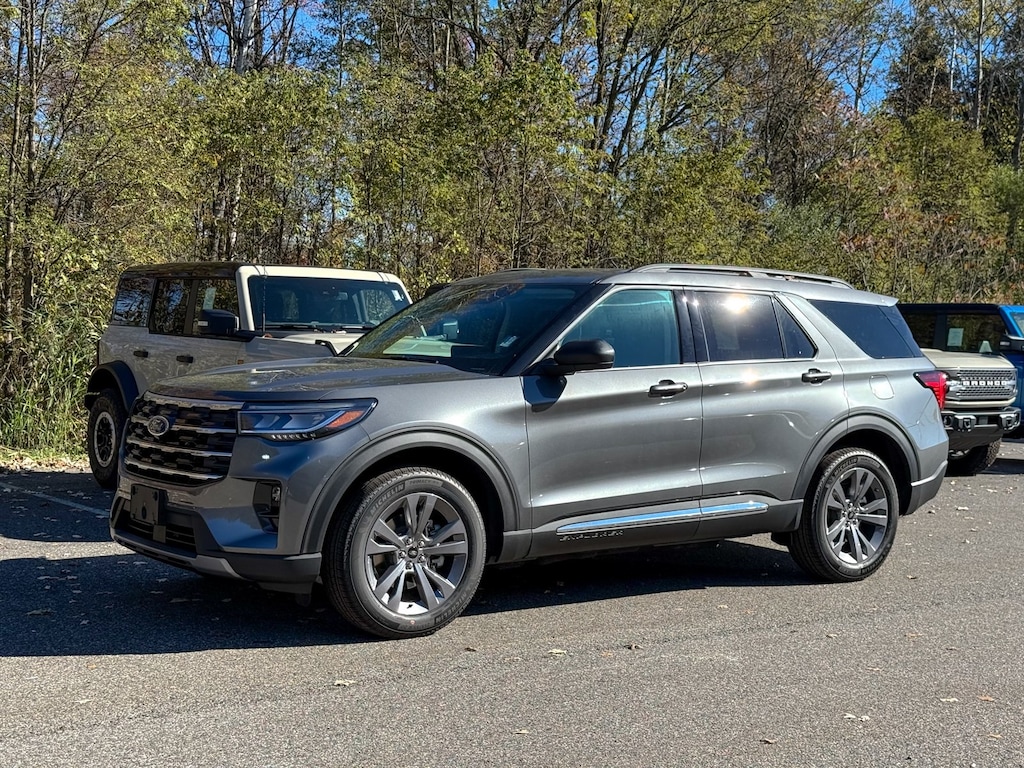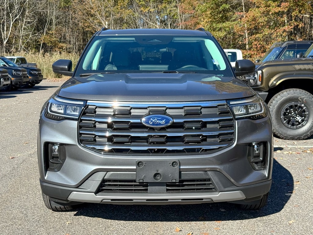 Carbonized Gray Metallic 2025 Ford Explorer Active 4WD 10-Speed Automatic 2.3L EcoBoost I-4 Dealer Detailed, Oil Change, Dealer Inspected, 2nd Row 35/30/35 Bench w/E-Z Entry & Armrest, 3.58 Non-Limited Slip Rear Axle, 3rd row seats: bench, 4-Wheel Disc Brakes, 6 Speakers, ABS brakes, Active Comfort Package, Air Conditioning, Alloy wheels, AM/FM radio: SiriusXM with 360L, AM/FM Stereo, Apple CarPlay/Android Auto, Auto High-beam Headlights, Automatic temperature control, Brake assist, Bumpers: body-color, Compass, Delay-off headlights, Driver door bin, Driver vanity mirror, Dual front impact airbags, Dual front side impact airbags, Electronic Stability Control, Emergency communication system: 911 Assist, Equipment Group 200A Standard Package, Exterior Parking Camera Rear, Four wheel independent suspension, Front anti-roll bar, Front Bucket Seats, Front Center Armrest, Front dual zone A/C, Front Fascia, Front License Plate Bracket, Front reading lights, Fully automatic headlights, Heated ActiveX Seating Material Captain's Chairs, Heated door mirrors, Heated front seats, Heated Steering Wheel, Illuminated entry, Knee airbag, Leather steering wheel, Low tire pressure warning, Navigation System, Occupant sensing airbag, Outside temperature display, Overhead airbag, Overhead console, Panic alarm, Panoramic Vista Roof w/Power Shade, Passenger door bin, Passenger vanity mirror, Power door mirrors, Power driver seat, Power Liftgate, Power passenger seat, Power steering, Power windows, Rear air conditioning, Rear anti-roll bar, Rear reading lights, Rear window defroster, Rear window wiper, Remote keyless entry, Remote Start System, Second Row HVAC Controls, Security system, Speed control, Speed-sensing steering, Speed-Sensitive Wipers, Split folding rear seat, Spoiler, Steering wheel mounted audio controls, Tachometer, Telescoping steering wheel, Tilt steering wheel, Traction control, Trip computer, Unique Heated Cloth Captain's Chairs, Universal Garage Door Opener (UGDO), Variably intermittent wipers, Wheels: 18" Sparkle Silver-Painted Aluminum, Wheels: 20" Carbonized Gray-Painted Aluminum.