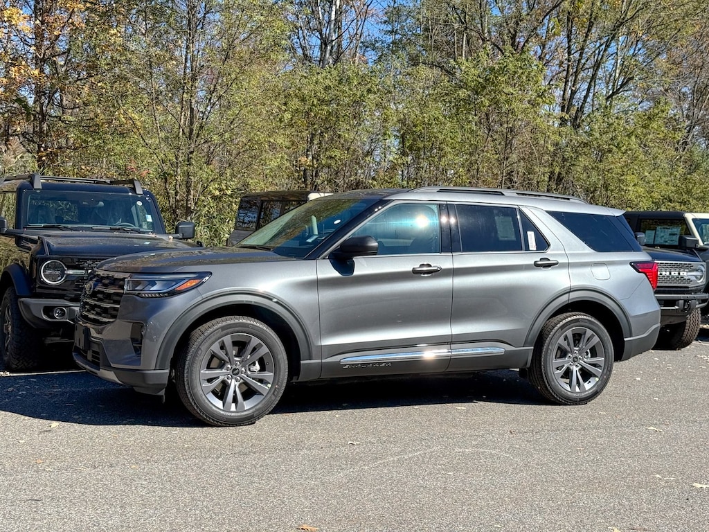 Carbonized Gray Metallic 2025 Ford Explorer Active 4WD 10-Speed Automatic 2.3L EcoBoost I-4 Dealer Detailed, Oil Change, Dealer Inspected, 3.58 Non-Limited Slip Rear Axle, 3rd row seats: bench, 4-Wheel Disc Brakes, 6 Speakers, ABS brakes, Active Comfort Package, Air Conditioning, Alloy wheels, AM/FM radio: SiriusXM with 360L, AM/FM Stereo, Apple CarPlay/Android Auto, Auto High-beam Headlights, Automatic temperature control, Brake assist, Bumpers: body-color, Compass, Delay-off headlights, Driver door bin, Driver vanity mirror, Dual front impact airbags, Dual front side impact airbags, Electronic Stability Control, Emergency communication system: 911 Assist, Equipment Group 200A Standard Package, Exterior Parking Camera Rear, Four wheel independent suspension, Front anti-roll bar, Front Bucket Seats, Front Center Armrest, Front dual zone A/C, Front Fascia, Front License Plate Bracket, Front reading lights, Fully automatic headlights, Heated ActiveX Seating Material Captain's Chairs, Heated door mirrors, Heated front seats, Heated Steering Wheel, Illuminated entry, Knee airbag, Leather steering wheel, Low tire pressure warning, Navigation System, Occupant sensing airbag, Outside temperature display, Overhead airbag, Overhead console, Panic alarm, Passenger door bin, Passenger vanity mirror, Power door mirrors, Power driver seat, Power Liftgate, Power passenger seat, Power steering, Power windows, Rear air conditioning, Rear anti-roll bar, Rear reading lights, Rear window defroster, Rear window wiper, Remote keyless entry, Remote Start System, Second Row HVAC Controls, Security system, Speed control, Speed-sensing steering, Speed-Sensitive Wipers, Split folding rear seat, Spoiler, Steering wheel mounted audio controls, Tachometer, Telescoping steering wheel, Tilt steering wheel, Traction control, Trip computer, Unique Heated Cloth Captain's Chairs, Universal Garage Door Opener (UGDO), Variably intermittent wipers, Wheels: 18" Sparkle Silver-Painted Aluminum, Wheels: 20" Carbonized Gray-Painted Aluminum.