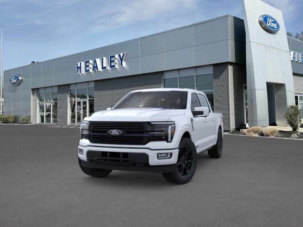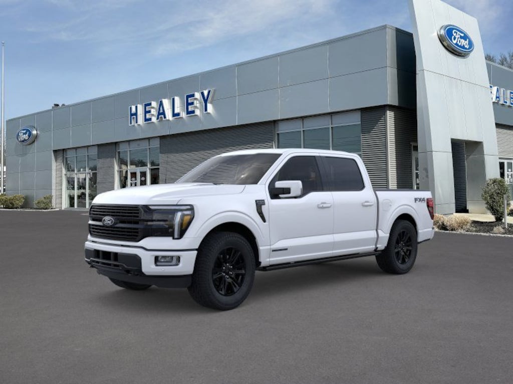 White Metallic 2025 Ford F-150 Platinum 4WD 10-Speed Automatic 3.5L PowerBoost Full-Hybrid V6 Fresh Oil Change, 4-Wheel Disc Brakes, 4x4 FX4 Off-Road Bodyside Decal, 8 Speakers, ABS brakes, Adjustable pedals, Air Conditioning, Alloy wheels, AM/FM radio: SiriusXM with 360L, Auto High-beam Headlights, Auto tilt-away steering wheel, Auto-dimming door mirrors, Auto-dimming Rear-View mirror, Automatic temperature control, Brake assist, Bumpers: body-color, Compass, Delay-off headlights, Driver door bin, Driver vanity mirror, Dual front impact airbags, Dual front side impact airbags, Electronic Stability Control, Emergency communication system: SYNC 4 911 Assist, Equipment Group 702A High, Front anti-roll bar, Front Bucket Seats, Front Center Armrest, Front dual zone A/C, Front fog lights, Front License Plate Bracket, Front reading lights, Front wheel independent suspension, Fully automatic headlights, FX4 Off-Road Package, Garage door transmitter, Heated door mirrors, Heated front seats, Heated rear seats, Heated steering wheel, Hill Descent Control, Illuminated entry, Leather steering wheel, Low tire pressure warning, Memory seat, Monotube Rear Shocks, Navigation system: Connected Navigation, Occupant sensing airbag, Off-Road Tuned Front Shock Absorbers, Outside temperature display, Overhead airbag, Overhead console, Panic alarm, Passenger door bin, Passenger vanity mirror, Pedal memory, Power door mirrors, Power driver seat, Power passenger seat, Power steering, Power windows, Radio data system, Radio: B&O Sound System by Bang & Olufsen, Rain sensing wipers, Rear reading lights, Rear seat center armrest, Rear step bumper, Rear window defroster, Remote keyless entry, Rock Crawl Mode, Security system, Speed control, Split folding rear seat, Steering wheel memory, Steering wheel mounted audio controls, SYNC 4 w/Enhanced Voice Recognition, Tachometer, Telescoping steering wheel, Tilt steering wheel, Tough Bed Spray-In Bedliner, Traction control, Tray Style Floor Liner, Trip computer, Turn signal indicator mirrors, Unique Multi-Contour Leather Bucket Seats, Variably intermittent wipers, Ventilated front seats, Voltmeter, Wheels: 20" Painted Gloss Ebony Black.