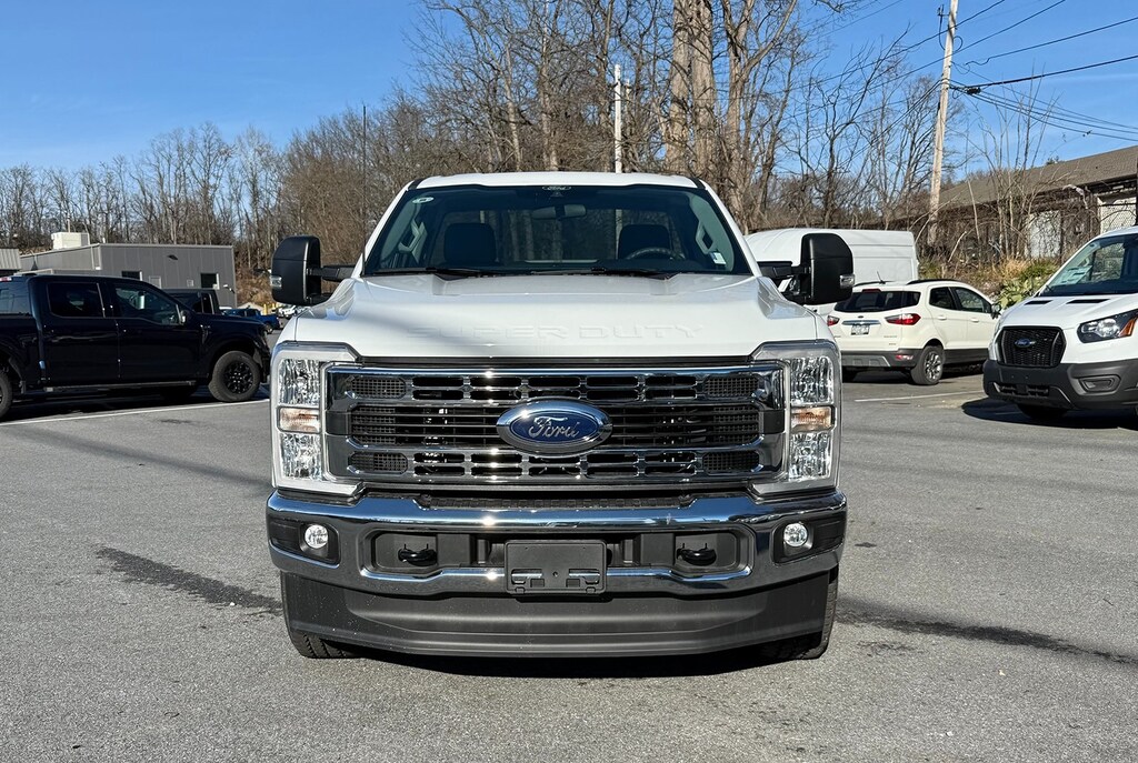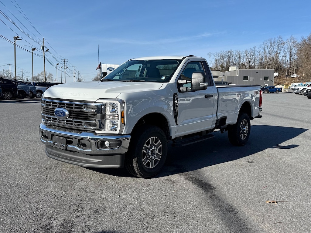 Oxford White 2025 Ford F-350SD XLT 4WD 10-Speed Automatic 7.3L V8 PFI SOHC 16V Federal 405hp Fresh Oil Change, 190 Amp Alternator, 4 Speakers, 4-Wheel Disc Brakes, 410 Amp Dual Alternators, ABS brakes, Air Conditioning, AM/FM radio, Brake assist, Cloth 40/20/40 Split Bench Seat, Compass, Delay-off headlights, Dual AGM 68 AH Battery, Dual front impact airbags, Dual front side impact airbags, Electronic Stability Control, Emergency communication system: SYNC 4 911 Assist, Exterior Parking Camera Rear, Front anti-roll bar, Front Center Armrest w/Storage, Front License Plate Bracket, Front reading lights, Fully automatic headlights, FX4 Off-Road Package, GVWR: 10,900 Lb Payload Package, Heated door mirrors, Hill Descent Control, Illuminated entry, LED Box Lighting, Low tire pressure warning, Off-Road Specifically Tuned Shock Absorbers, Outside temperature display, Overhead airbag, Overhead console, Panic alarm, Passenger cancellable airbag, Passenger vanity mirror, Platform Running Boards, Power door mirrors, Power steering, Power windows, Radio: AM/FM Stereo with MP3 Player, Rear step bumper, Rear Wheel Well Liners, Remote keyless entry, Remote Start System, Security system, Speed control, Steering wheel mounted audio controls, SYNC 4, Tachometer, Telescoping steering wheel, Tilt steering wheel, Traction control, Trip computer, Turn signal indicator mirrors, Unique FX4 Off-Road Box Decal, Upfitter Switches (6), Variably intermittent wipers.