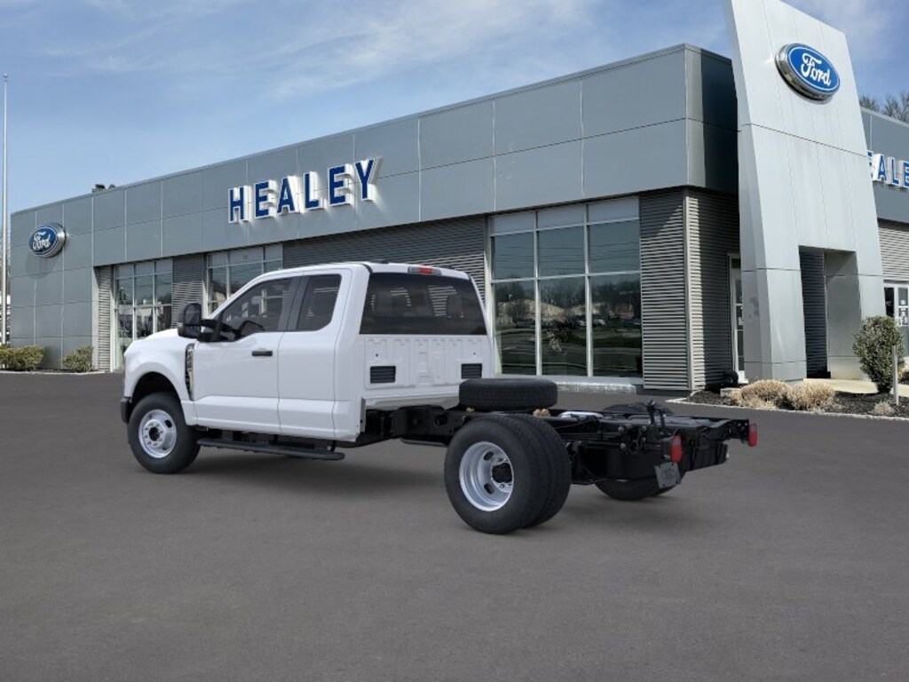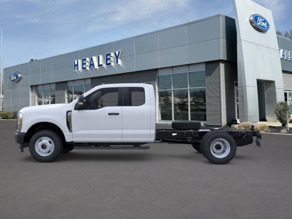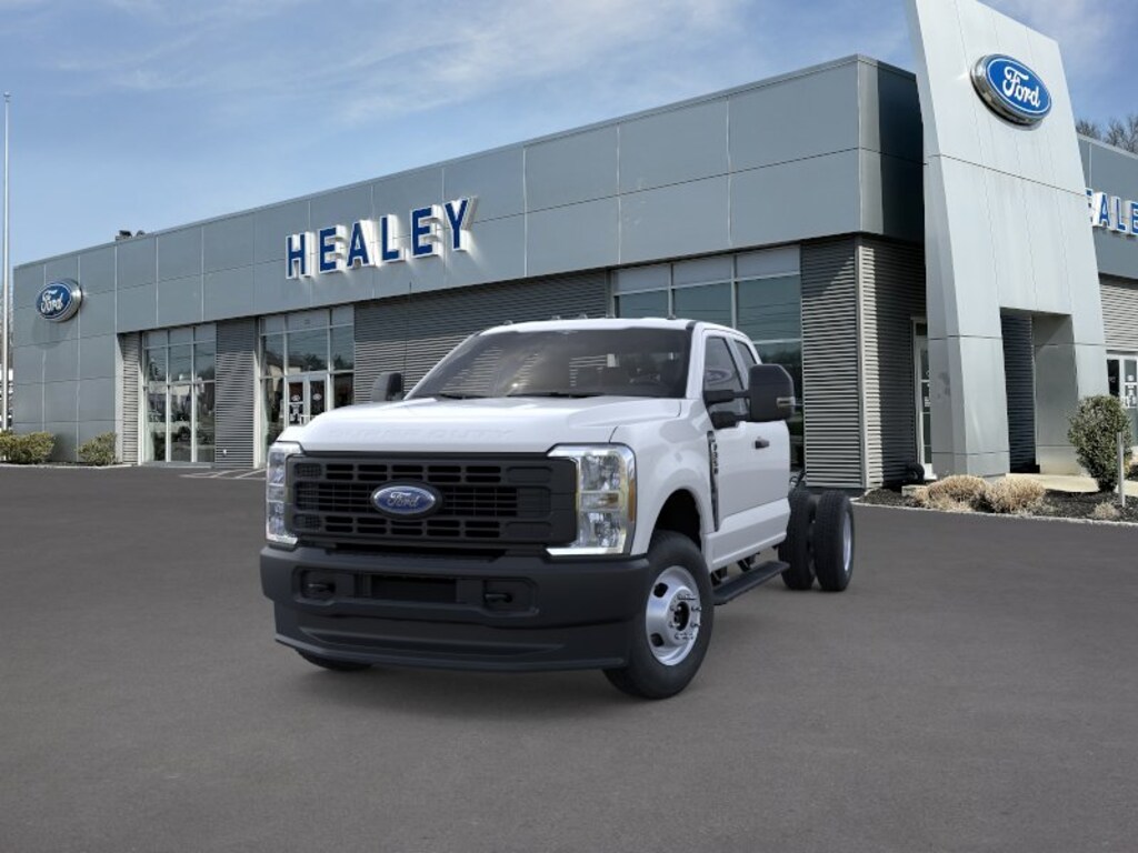 Oxford White 2025 Ford F-350SD XL DRW 4WD 10-Speed Automatic 7.3L V8 PFI OHV 16V Federal 335hp Fresh Oil Change, 17" Argent Painted Steel Wheels, 4-Ton Hydraulic Jack, 4-Wheel Disc Brakes, 410 Amp Dual Alternators, 6 Speakers, ABS brakes, Air Conditioning, AM/FM radio, AM/FM Stereo w/MP3 Player, Brake assist, Center High-Mounted Stop Lamp (CHMSL), Cloth 40/20/40 Split Bench Seat, Compass, Delay-off headlights, Dual front impact airbags, Dual front side impact airbags, Dual rear wheels, Emergency communication system: SYNC 4 911 Assist, Engine Block Heater, Front anti-roll bar, Front Center Armrest w/Storage, Front License Plate Bracket, Front reading lights, Front Wheel Well Liners (Pre-Installed), Fully automatic headlights, GVWR: 14,000 lb Payload Package, Heated door mirrors, Illuminated entry, Interior Work Surface, Internet access capable: FordPass Connect 5G, Low tire pressure warning, Outside temperature display, Overhead airbag, Overhead console, Panic alarm, Passenger cancellable airbag, Passenger vanity mirror, Platform Running Boards, Power door mirrors, Power steering, Power windows, Rear anti-roll bar, Rear View Camera & Prep Kit, Remote keyless entry, Security system, Snow Plow Prep Package, Speed control, Split folding rear seat, Steering wheel mounted audio controls, SYNC 4 Communication & Entertainment System, Tachometer, Telescoping steering wheel, Tilt steering wheel, Traction control, Trip computer, Turn signal indicator mirrors, Variably intermittent wipers.