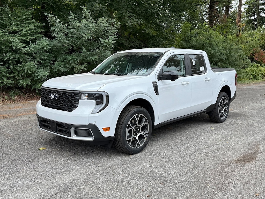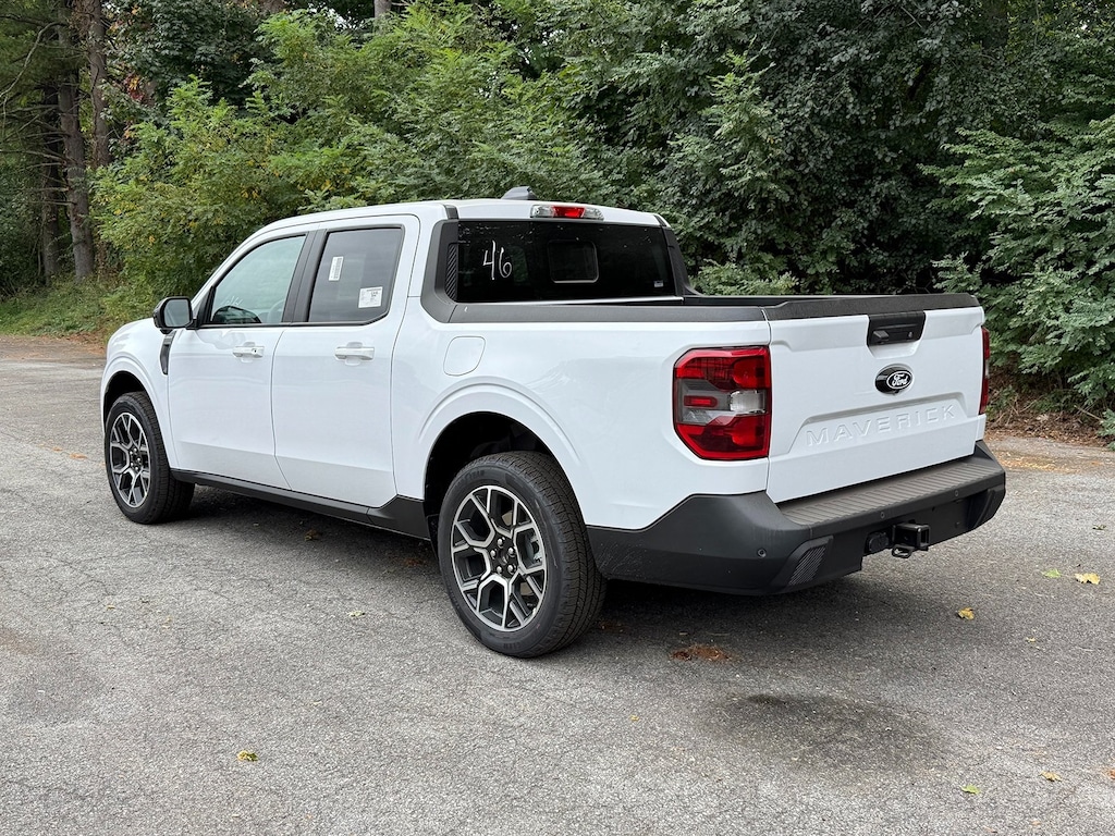 Oxford White 2025 Ford Maverick Lariat AWD 8-Speed Automatic EcoBoost 2.0L I4 GTDi DOHC Turbocharged VCT Fresh Oil Change, 2.91 Axle Ratio, 4-Wheel Disc Brakes, 4K Tow Package, 8 Speakers, ABS brakes, ActiveX Trimmed Heated Front Bucket Seats, Air Conditioning, Alloy wheels, AM/FM radio: SiriusXM with 360L, Apple CarPlay/Android Auto, Auto High-beam Headlights, Automatic temperature control, Brake assist, Bumpers: body-color, Compass, Delay-off headlights, Driver door bin, Driver vanity mirror, Dual front impact airbags, Dual front side impact airbags, Electronic Stability Control, Emergency communication system: SYNC 4 911 Assist, Equipment Group 502A, Exterior Parking Camera Rear, Four wheel independent suspension, Front anti-roll bar, Front Bucket Seats, Front Center Armrest, Front dual zone A/C, Front reading lights, Fully automatic headlights, Heated door mirrors, Heated front seats, Heated steering wheel, Illuminated entry, Knee airbag, Low tire pressure warning, Navigation system: Connected Navigation, Occupant sensing airbag, Outside temperature display, Overhead airbag, Overhead console, Panic alarm, Passenger door bin, Passenger vanity mirror, Power door mirrors, Power driver seat, Power steering, Power windows, Radio data system, Radio: B&O Sound System by Bang & Olufsen, Rear anti-roll bar, Rear seat center armrest, Rear step bumper, Remote keyless entry, Security system, SiriusXM w/360L, Speed control, Speed-sensing steering, Steering wheel mounted audio controls, SYNC 4 w/Enhanced Voice Recognition, Telescoping steering wheel, Tilt steering wheel, Traction control, Trailer Brake Controller, Trailer Hitch (Class III) 2" Receiver, Transmission Oil Cooler, Trip computer, Upgraded Cooling Fan, Wheels: 19" Machined Painted Aluminum.