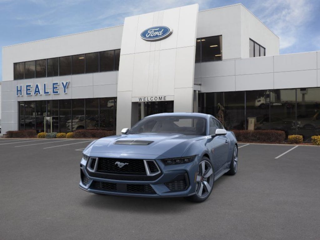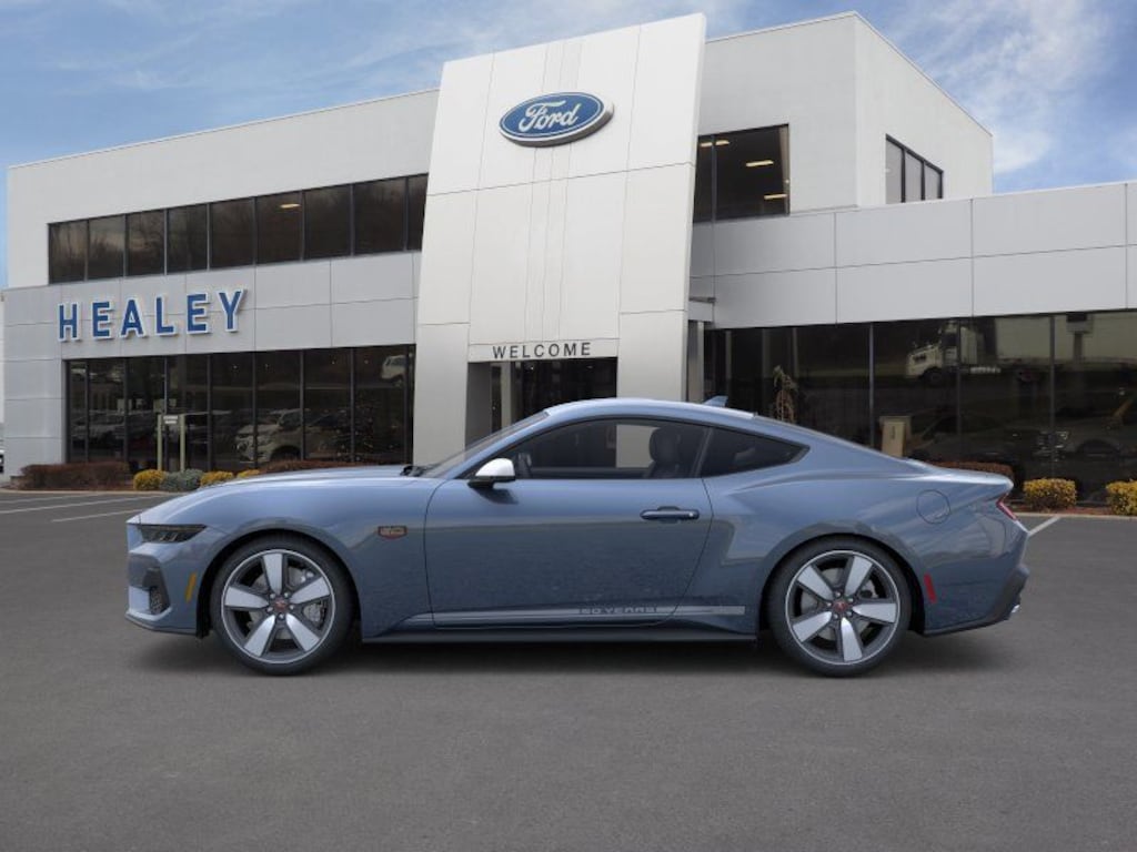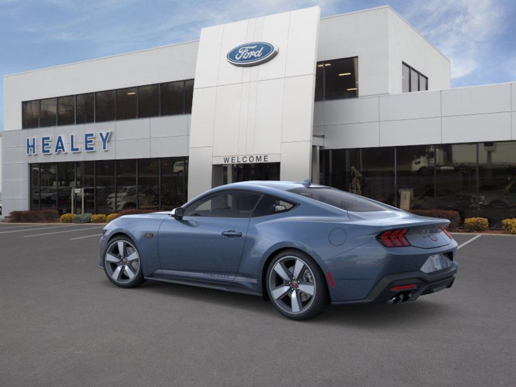 Vapor Blue Metallic 2025 Ford Mustang GT Premium RWD 10-Speed Automatic 5.0L V8 Ti-VCT Dealer Detailed, Oil Change, Dealer Inspected, 4-Wheel Disc Brakes, 60th Anniversary Package, ABS brakes, Active Valve Performance Exhaust, Air Conditioning, Alloy wheels, AM/FM Stereo, Anniversary Special Edition Badge, Auto High-beam Headlights, Automatic temperature control, B&O Sound System by Bang & Olufsen w/12 Speakers, Brake assist, Brembo Brake System, Brembo Brake System w/Performance Linings, Bumpers: body-color, Compass, Delay-off headlights, Driver door bin, Driver vanity mirror, Dual front impact airbags, Dual front side impact airbags, Electronic Stability Control, Emergency communication system: 911 Assist, Equipment Group 401A High Package, Exterior Parking Camera Rear, Four wheel independent suspension, Front anti-roll bar, Front Bucket Seats, Front Center Armrest, Front dual zone A/C, Front reading lights, Fully automatic headlights, Illuminated Door-Sill Scuff Plates, Illuminated entry, Internet access capable: FordPass Connect, Knee airbag, Leather Bucket Seats, Leather Shift Knob, Leather steering wheel, Leather-Trimmed Bucket Seats w/Color Accents, Low tire pressure warning, Occupant sensing airbag, Outside temperature display, Overhead airbag, Overhead console, Painted High Gloss Black Honeycomb Grille, Panic alarm, Passenger door bin, Passenger vanity mirror, Power door mirrors, Power steering, Power windows, Radio data system, Rain sensing wipers, Rear anti-roll bar, Rear Parking Sensors, Rear window defroster, Remote keyless entry, Speed control, Speed-sensing steering, Speed-Sensitive Wipers, Split folding rear seat, Spoiler, Sport steering wheel, Steering wheel mounted audio controls, SYNC 4, Tachometer, Telescoping steering wheel, Tilt steering wheel, Traction control, Trip computer, Variably intermittent wipers, Voltmeter.
