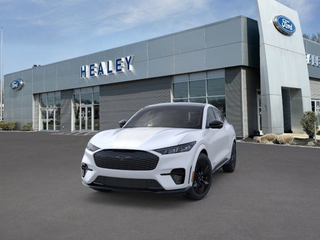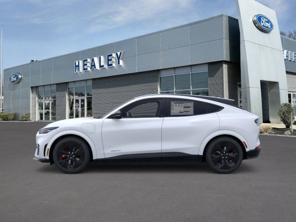 Star White Metallic Tri-Coat 2025 Ford Mustang Mach-E GT AWD Single-Speed Automatic Electric Motor Fresh Oil Change, 10 Speakers, 1st & 2nd Row Floor Liners w/o Carpet Mats, 4-Wheel Disc Brakes, ABS brakes, Adaptive suspension, Air Conditioning, Alloy wheels, AM/FM radio: SiriusXM with 360L, Apple CarPlay/Android Auto, Auto High-beam Headlights, Auto-dimming Rear-View mirror, Automatic temperature control, Brake assist, Bumpers: body-color, Cargo Area Cover, Cargo Floor Liner, Compass, Delay-off headlights, Driver door bin, Driver vanity mirror, Dual front impact airbags, Dual front side impact airbags, Electronic Stability Control, Emergency communication system: 911 Assist, Equipment Group 400A Standard Package, Exterior Parking Camera Rear, Four wheel independent suspension, Front anti-roll bar, Front Bucket Seats, Front Center Armrest, Front dual zone A/C, Front License Plate Bracket, Front reading lights, Fully automatic headlights, Garage door transmitter, Heated door mirrors, Heated front seats, Heated Perforated ActiveX Performance Seats, Heated steering wheel, Illuminated entry, Interior Protection Package, Internet access capable: FordPass Connect, Knee airbag, Low tire pressure warning, Matte Clear Hood Stripes, Memory seat, Mobile Power Cord (120V/240V), Mustang Mach-E GT Performance Upgrade, Navigation system: Connected Navigation, Occupant sensing airbag, Outside temperature display, Overhead airbag, Overhead console, Panic alarm, Panoramic Fixed-Glass Roof, Passenger door bin, Passenger vanity mirror, Power door mirrors, Power driver seat, Power Liftgate, Power passenger seat, Power steering, Power windows, Radio data system, Radio: B&O Sound System by Bang & Olufsen, Rain sensing wipers, Rear anti-roll bar, Rear seat center armrest, Rear side impact airbag, Rear window defroster, Rear window wiper, Remote keyless entry, Security system, SiriusXM w/360L, Speed control, Speed-sensing steering, Speed-Sensitive Wipers, Split folding rear seat, Spoiler, Steering wheel mounted audio controls, SYNC 4A w/Enhanced Voice Recognition, Telescoping steering wheel, Tilt steering wheel, Traction control, Trip computer, Turn signal indicator mirrors, Variably intermittent wipers, Wheels: 20" Monochromatic High Gloss Black-Painted.