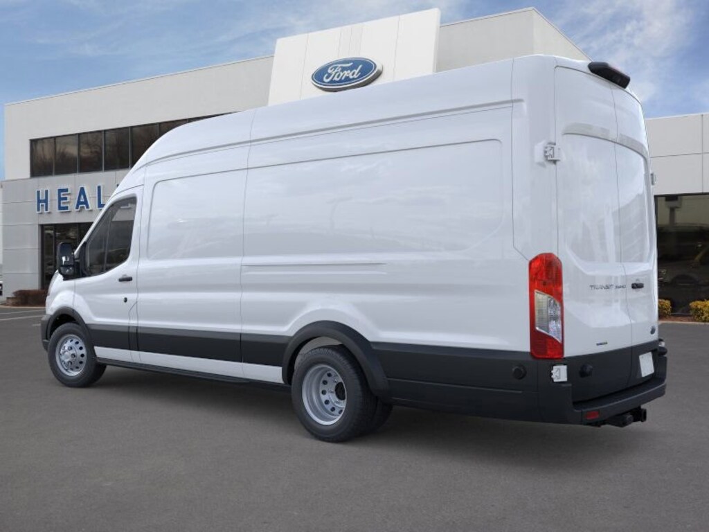 Oxford White 2025 Ford Transit-350 RWD 10-Speed Automatic with Overdrive EcoBoost 3.5L V6 GTDi DOHC 24V Twin Turbocharged Dealer Detailed, Oil Change, Dealer Inspected, 3.73 Limited-Slip Axle Ratio, 4 Speakers, 4-Wheel Disc Brakes, 6 Cargo Tie-Down Hooks, ABS brakes, Air Conditioning, AM/FM radio, AM/FM Stereo, Auto High-beam Headlights, Brake assist, D-Pillar Assist Handles, Dark Palazzo Gray Cloth Bucket Seats w/Armrests, Dark Palazzo Gray Vinyl Bucket Seats, Delay-off headlights, Driver door bin, Driver's Seat Mounted Armrest, Dual front impact airbags, Dual front side impact airbags, Dual rear wheels, Electronic Air Temperature Control, Electronic Stability Control, Exterior Parking Camera Rear, Frame Mounted Hitch Receiver, Front & Rear Vinyl Floor Covering, Front anti-roll bar, Front Bucket Seats, Front License Plate Bracket, Front Overhead Shelf, Front reading lights, Front wheel independent suspension, Full Rear Compartment Lighting, Fully automatic headlights, Heavy-Duty Trailer Tow Package, High Resolution Digital Camera, Illuminated entry, Illuminated Sun Visors, Interior Upgrade Package, Large Center Console, Low tire pressure warning, Midship Extended Range Fuel Tank (31 Gallons), Occupant sensing airbag, Order Code 101A, Overhead airbag, Panic alarm, Passenger cancellable airbag, Passenger door bin, Passenger-Side B-Pillar Assist Handle, Power door mirrors, Power steering, Power windows, Radio: AM/FM Stereo w/SYNC 4, Remote keyless entry, Short-Arm Manual-Folding Power Adjust Mirrors, Speed control, Steering wheel mounted audio controls, Tachometer, Telescoping steering wheel, Tilt steering wheel, Tow/Haul Mode w/Trailering Wiring Provisions, Traction control, Trailer Brake Controller (TBC), Variably intermittent wipers, Vinyl Front Bucket Seats, Wheels: 16" Heavy Duty Silver Steel.