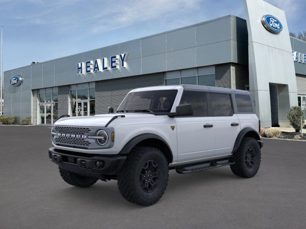 Oxford White 2026 Ford Bronco Badlands 4WD 10-Speed Automatic 2.7L EcoBoost V6 Fresh Oil Change, 2-Door Intelligent Access with Lock/Unlock, 360-Degree Camera, 4-Wheel Disc Brakes, 4.7 Axle Ratio, 7 Speakers, ABS brakes, Adaptive Cruise Control, Air Conditioning, Alloy wheels, AM/FM radio: SiriusXM with 360L, AM/FM Stereo, Ambient Footwell Lighting, Auto High-Beam Headlamps, Auto High-beam Headlights, Auto-dimming Rear-View mirror, BLIS Blind Spot Information System, Brake assist, Carbonized Gray Molded-in-Color Hard Top, Compass, Connected Navigation, Delay-off headlights, Driver and Front Passenger Illuminated Sliding Visor Vanity Mirrors, Driver door bin, Driver vanity mirror, Dual front impact airbags, Dual front side impact airbags, Dual Smart Charging USB Ports, Dual-Zone Electronic Automatic Temperature Control, Electronic Stability Control, Emergency communication system: 911 Assist, Equipment Group 334A Lux Package, Evasive Steering Assist, Exterior Parking Camera Rear, Ford Connectivity Package (1-Year Included), Front anti-roll bar, Front Bucket Seats, Front Center Armrest, Front fog lights, Front License Plate Bracket, Front Parking Sensors, Front reading lights, Front Row Heated Seats, Front Row Top Panels and Door Storage Bags, Front wheel independent suspension, Fully automatic headlights, Hard Top Sound Deadening Headliner, Heated door mirrors, Heated front seats, Heated Steering Wheel, Illuminated entry, Information on Demand Panel, Integrated roll-over protection, Lane-Keeping System, Leather Shift Knob, Leather-Trimmed/Vinyl Bucket Seats, Low tire pressure warning, Marine Grade Vinyl Heated Bucket Seats, Occupant sensing airbag, Outside temperature display, Overhead airbag, Overhead console, Panic alarm, Passenger door bin, Passenger vanity mirror, Power door mirrors, Power steering, Power windows, Pre-Collision Assist with Automatic Emergency Braking, Pro Power Onboard - 400W, Radio data system, Raptor-Style Running Board, Rear Parking Sensors, Rear-View Camera, Rear-Window Defroster and Washer, Remote keyless entry, Security system, Sideview Mirrors, SiriusXM with 360L, Speed control, Split folding rear seat, Steering wheel mounted audio controls, SYNC 4, Tachometer, Telescoping steering wheel, Tilt steering wheel, Traction control, Trip computer, Variably intermittent wipers, Voltmeter, Wheels: 17" Carbonized Gray-Painted Aluminum.