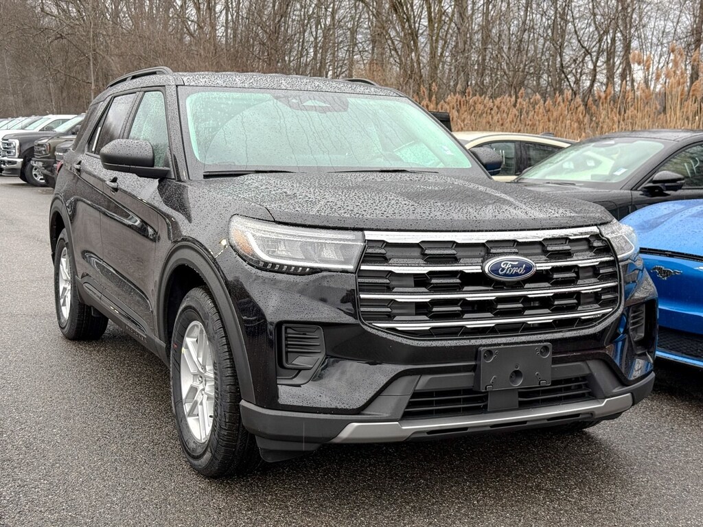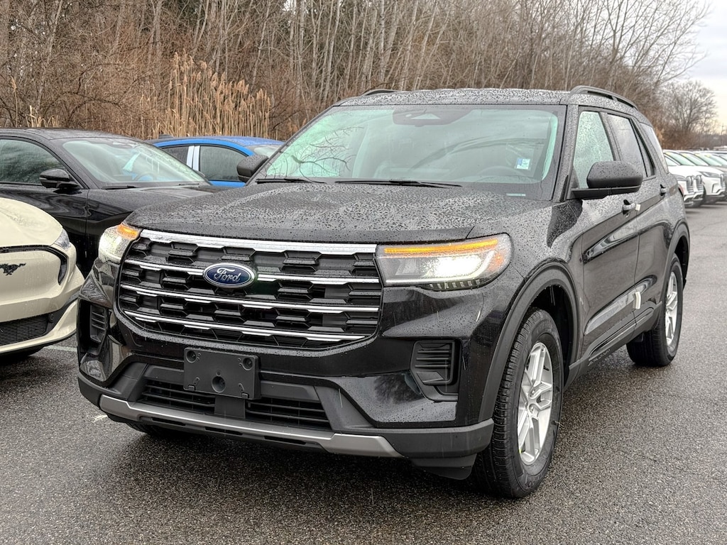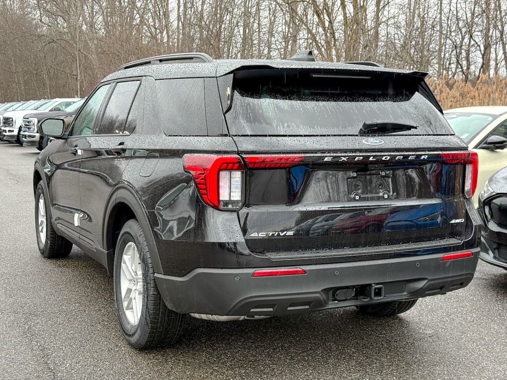 Agate Black Metallic 2026 Ford Explorer Active 4WD 10-Speed Automatic 2.3L EcoBoost I-4 Dealer Detailed, Oil Change, Dealer Inspected, 2nd Row 35/30/35 Bench with E-Z Entry and Armrest, 3rd row seats: bench, 4-Wheel Disc Brakes, 6 Speakers, ABS brakes, Air Conditioning, Alloy wheels, AM/FM radio: SiriusXM with 360L, AM/FM Stereo, Apple CarPlay/Android Auto, Auto High-beam Headlights, Automatic temperature control, Brake assist, Bumpers: body-color, Compass, Delay-off headlights, Driver door bin, Driver vanity mirror, Dual front impact airbags, Dual front side impact airbags, Electronic Stability Control, Emergency communication system: 911 Assist, Exterior Parking Camera Rear, Ford Connectivity Package (one-Time Purchase - 7 Years), Four wheel independent suspension, Front and 2nd Rows Floor Liners with Carper Floor Mats, Front anti-roll bar, Front Bucket Seats, Front Center Armrest, Front dual zone A/C, Front License Plate Bracket, Front reading lights, Fully automatic headlights, Heated door mirrors, Illuminated entry, Knee airbag, Low tire pressure warning, Navigation System, Occupant sensing airbag, Outside temperature display, Overhead airbag, Overhead console, Panic alarm, Passenger door bin, Passenger vanity mirror, Power door mirrors, Power driver seat, Power steering, Power windows, Rear air conditioning, Rear anti-roll bar, Rear reading lights, Rear window defroster, Rear window wiper, Remote keyless entry, Security system, Speed control, Speed-sensing steering, Speed-Sensitive Wipers, Split folding rear seat, Spoiler, Steering wheel mounted audio controls, Tachometer, Telescoping steering wheel, Tilt steering wheel, Traction control, Trip computer, Variably intermittent wipers, Wheels: 18" Sparkle Silver-Painted Aluminum.