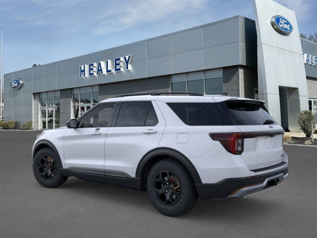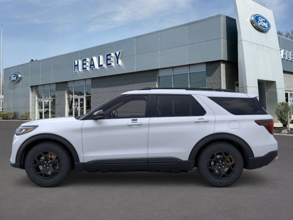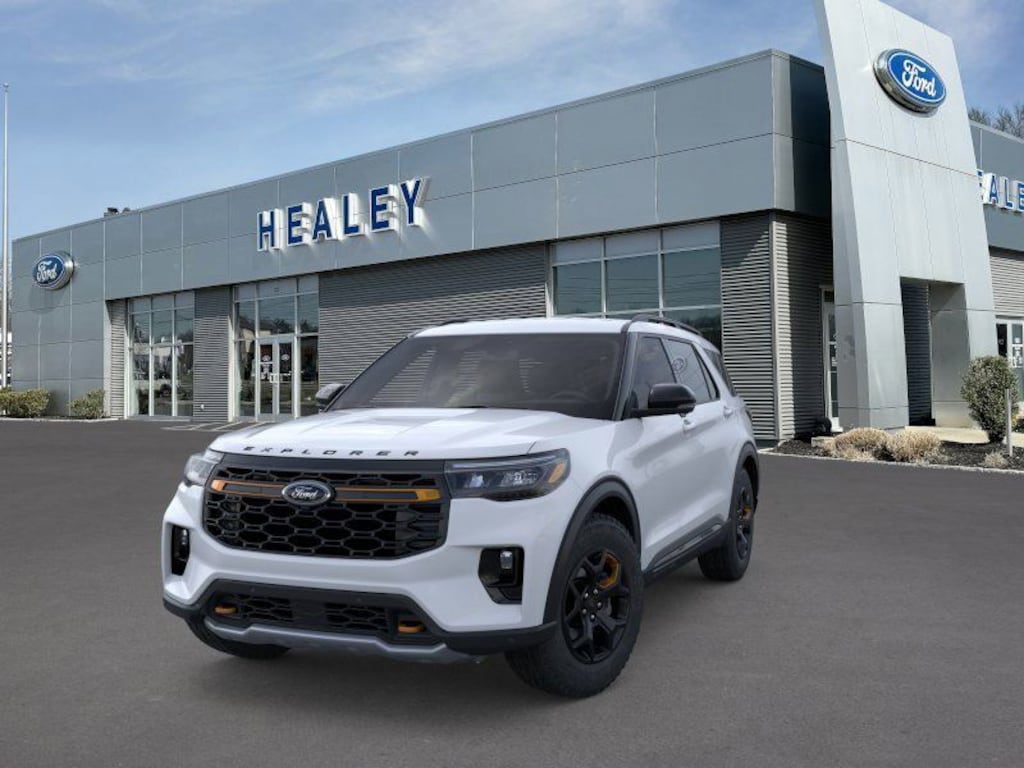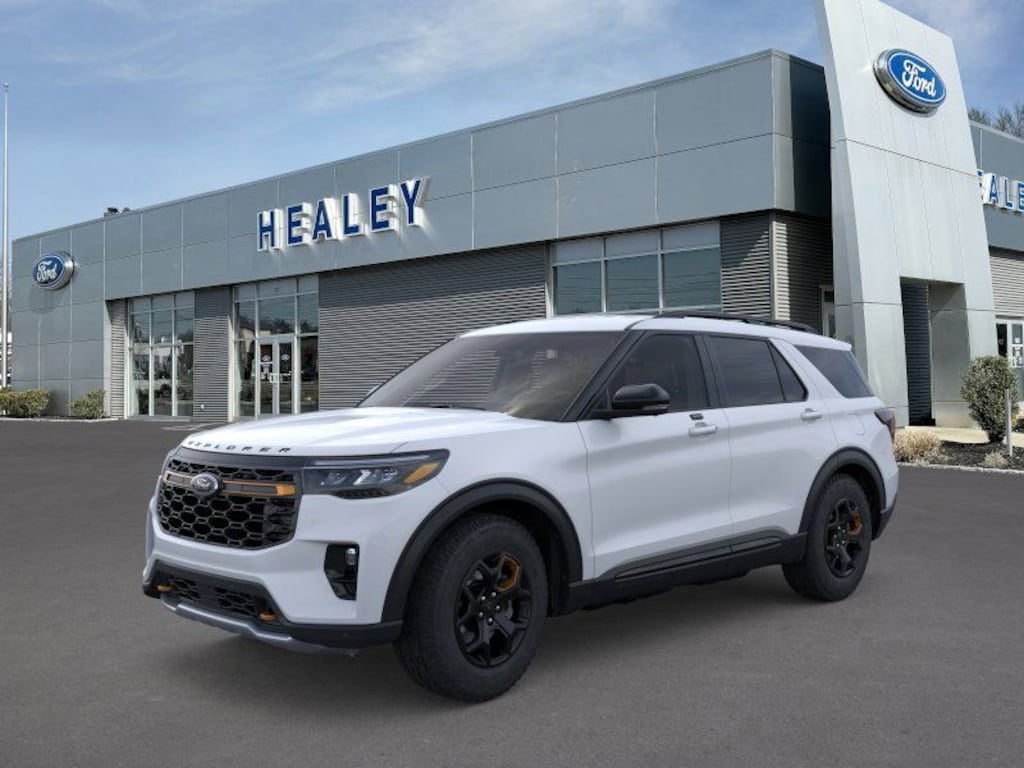 Space White Metallic 2026 Ford Explorer Tremor 4WD 10-Speed Automatic 2.3L EcoBoost I-4 Fresh Oil Change, 10 Speakers, 3rd Row PowerFold Seats, 3rd row seats: bench, 4-Wheel Disc Brakes, ABS brakes, Air Conditioning, Alloy wheels, AM/FM radio: SiriusXM with 360L, Ambient Lighting, Apple CarPlay/Android Auto, Auto High-beam Headlights, Auto-Dimming Interior Rear-View Mirror, Automatic temperature control, BlueCruise (equipment + 1-Time Purchase), BlueCruise Hardware, Brake assist, Bumpers: body-color, Compass, Delay-off headlights, Driver door bin, Driver vanity mirror, Dual front impact airbags, Dual front side impact airbags, Electronic Stability Control, Emergency communication system: 911 Assist, Equipment Group 800A Standard Package, Exterior Parking Camera Rear, Ford Connectivity Package (one-Time Purchase - 7 Years), Four wheel independent suspension, Front anti-roll bar, Front Bucket Seats, Front Center Armrest, Front dual zone A/C, Front fog lights, Front License Plate Bracket, Front reading lights, Fully automatic headlights, Garage door transmitter, Heated door mirrors, Heated front seats, Heated rear seats, Heated steering wheel, Heated/Ventilated Miko Suede Captain's Chairs, Illuminated entry, Knee airbag, Leather steering wheel, Low tire pressure warning, Manual-Folding Sideview Mirrors, Memory Driver's Seat, Navigation System, Occupant sensing airbag, Outside temperature display, Overhead airbag, Overhead console, Panic alarm, Passenger door bin, Passenger vanity mirror, Power door mirrors, Power driver seat, Power Liftgate, Power passenger seat, Power steering, Power windows, Radio: B&O Sound System by Bang and Olufsen, Rain-Sensing Wipers (front Only), Rear air conditioning, Rear anti-roll bar, Rear reading lights, Rear window defroster, Rear window wiper, Remote keyless entry, SecuriCode Keyless Entry Keypad, Security system, Speed control, Speed-sensing steering, Speed-Sensitive Wipers, Split folding rear seat, Spoiler, Sport steering wheel, Steering wheel mounted audio controls, Tachometer, Telescoping steering wheel, Tilt steering wheel, Traction control, Tremor Convenience Package, Trip computer, Variably intermittent wipers, Ventilated front seats, Wheels: 18" High Gloss Black-Painted Aluminum.