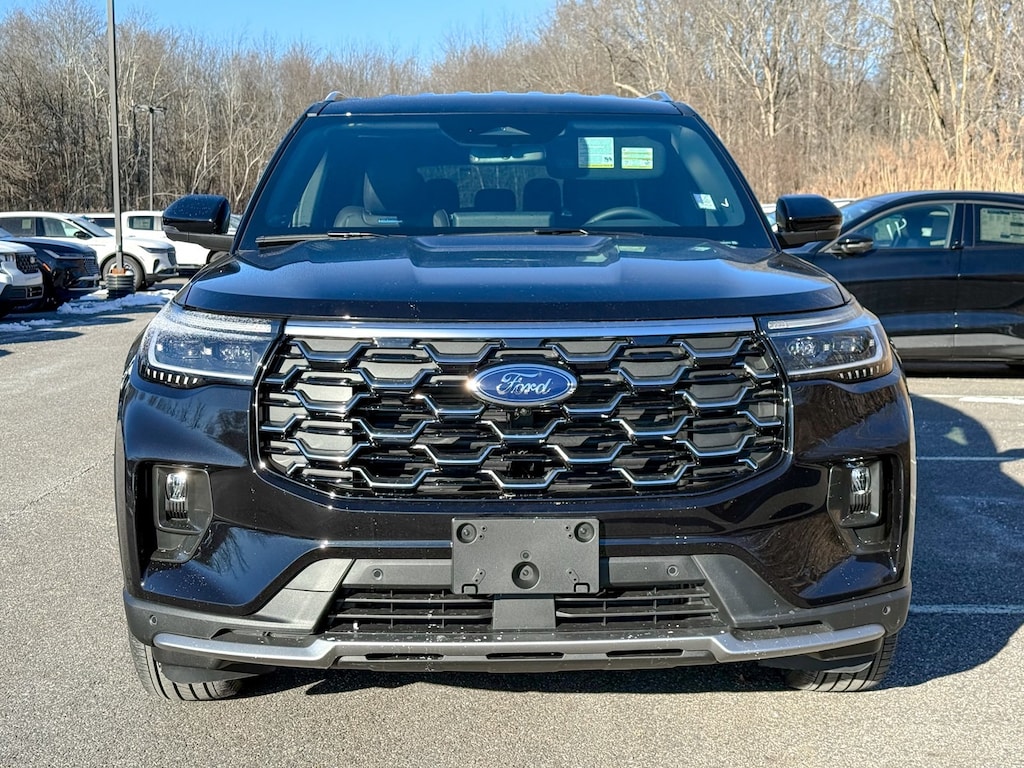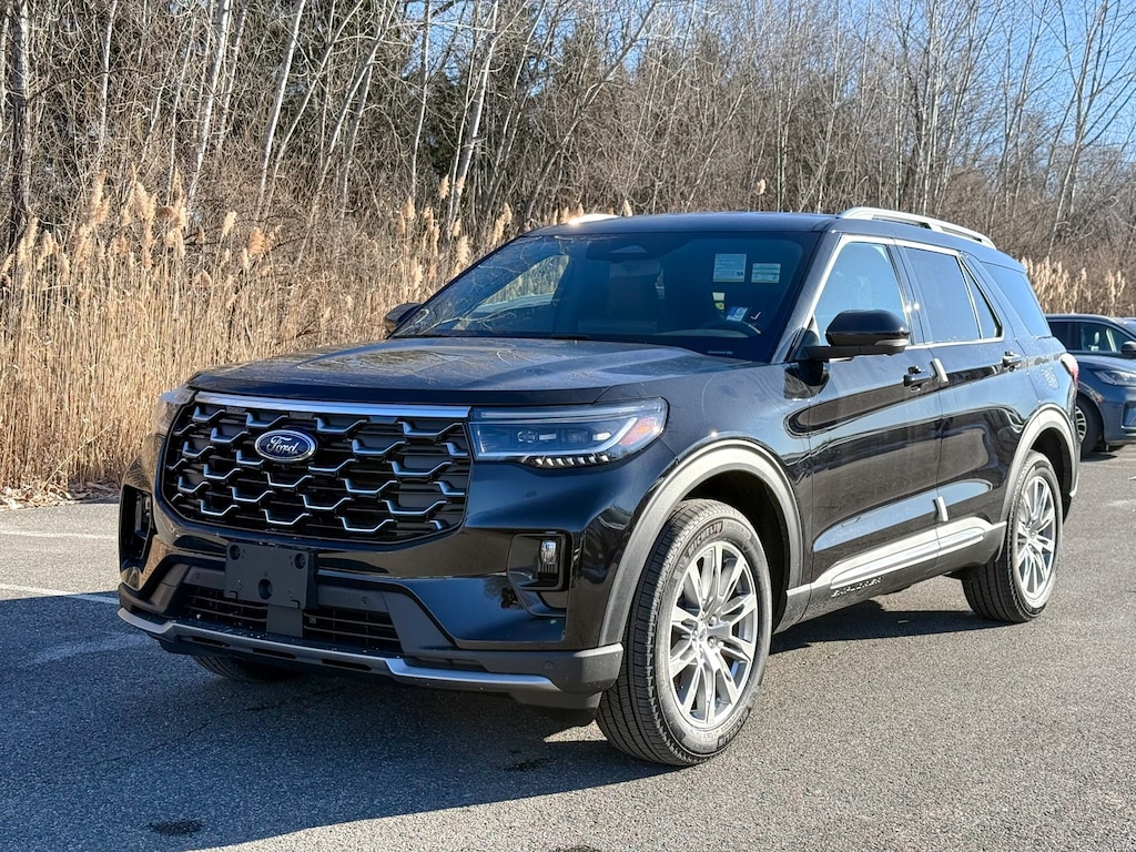 Agate Black Metallic 2026 Ford Explorer Platinum 4WD 10-Speed Automatic 2.3L EcoBoost I-4 Dealer Detailed, Oil Change, Dealer Inspected, 14 Speakers, 2nd Row 35/30/35 Bench with E-Z Entry and Armrest, 3rd row seats: bench, 4-Wheel Disc Brakes, ABS brakes, ActiveX Trimmed Captain's Chairs, Air Conditioning, Alloy wheels, AM/FM radio: SiriusXM with 360L, Apple CarPlay/Android Auto, Auto High-beam Headlights, Auto-dimming door mirrors, Auto-dimming Rear-View mirror, Automatic temperature control, Brake assist, Bumpers: body-color, Compass, Delay-off headlights, Driver door bin, Driver vanity mirror, Dual front impact airbags, Dual front side impact airbags, Electronic Stability Control, Emergency communication system: 911 Assist, Equipment Group 600A Standard Package, Exterior Parking Camera Rear, Ford Connectivity Package (one-Time Purchase - 7 Years), Four wheel independent suspension, Front and 2nd Rows Floor Liners with Carper Floor Mats, Front anti-roll bar, Front Bucket Seats, Front Center Armrest, Front dual zone A/C, Front fog lights, Front License Plate Bracket, Front reading lights, Fully automatic headlights, Garage door transmitter, Heated door mirrors, Heated front seats, Heated rear seats, Heated steering wheel, Illuminated entry, Internet access capable: FordPass Connect 5G, Knee airbag, Leather steering wheel, Low tire pressure warning, Memory seat, Navigation System, Occupant sensing airbag, Outside temperature display, Overhead airbag, Overhead console, Panic alarm, Passenger door bin, Passenger vanity mirror, Power door mirrors, Power driver seat, Power Liftgate, Power passenger seat, Power steering, Power windows, Radio data system, Radio: B&O Sound System by Bang & Olufsen with HD, Rain sensing wipers, Rear air conditioning, Rear anti-roll bar, Rear reading lights, Rear window defroster, Rear window wiper, Remote keyless entry, Security system, Speed control, Speed-sensing steering, Speed-Sensitive Wipers, Split folding rear seat, Spoiler, Steering wheel mounted audio controls, Tachometer, Telescoping steering wheel, Tilt steering wheel, Traction control, Trip computer, Turn signal indicator mirrors, Variably intermittent wipers, Ventilated front seats, Wheels: 20" Luster Nickel-Painted Aluminum.