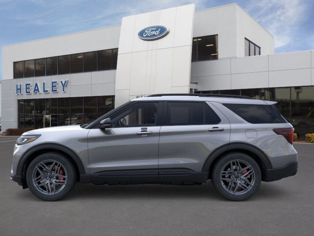 Gray 2026 Ford Explorer ST 4WD 10-Speed Automatic 3.0L EcoBoost V6 Dealer Detailed, Oil Change, Dealer Inspected, 10 Speakers, 3rd row seats: bench, 4-Wheel Disc Brakes, ABS brakes, Air Conditioning, Alloy wheels, AM/FM radio: SiriusXM with 360L, Apple CarPlay/Android Auto, Auto High-beam Headlights, Auto-dimming door mirrors, Auto-dimming Rear-View mirror, Automatic temperature control, Brake assist, Bumpers: body-color, Compass, Delay-off headlights, Driver door bin, Driver vanity mirror, Dual front impact airbags, Dual front side impact airbags, Electronic Stability Control, Emergency communication system: 911 Assist, Exterior Parking Camera Rear, Four wheel independent suspension, Front anti-roll bar, Front Bucket Seats, Front Center Armrest, Front dual zone A/C, Front fog lights, Front reading lights, Fully automatic headlights, Garage door transmitter, Heated door mirrors, Heated front seats, Heated rear seats, Heated steering wheel, Heated/Ventilated Miko Captain's Chairs, Illuminated entry, Knee airbag, Leather steering wheel, Low tire pressure warning, Memory seat, Navigation System, Occupant sensing airbag, Outside temperature display, Overhead airbag, Overhead console, Panic alarm, Passenger door bin, Passenger vanity mirror, Power door mirrors, Power driver seat, Power Liftgate, Power passenger seat, Power steering, Power windows, Radio: B&O Sound System by Bang & Olufsen, Rain sensing wipers, Rear air conditioning, Rear anti-roll bar, Rear reading lights, Rear window defroster, Rear window wiper, Remote keyless entry, Security system, Speed control, Speed-sensing steering, Speed-Sensitive Wipers, Split folding rear seat, Spoiler, Sport steering wheel, Steering wheel mounted audio controls, Tachometer, Telescoping steering wheel, Tilt steering wheel, Traction control, Trip computer, Turn signal indicator mirrors, Variably intermittent wipers, Ventilated front seats, Wheels: 21" Magnetite-Painted Aluminum.
