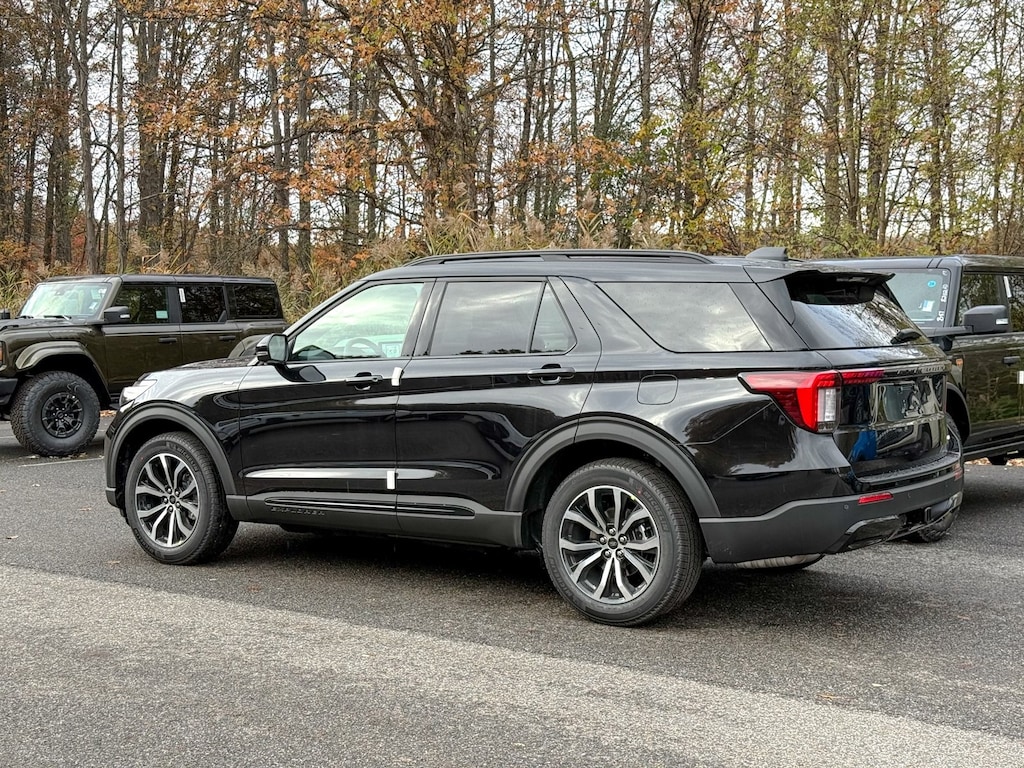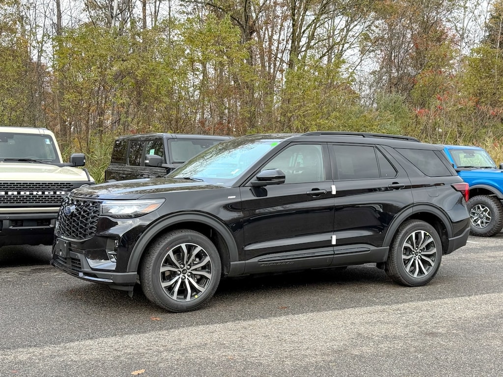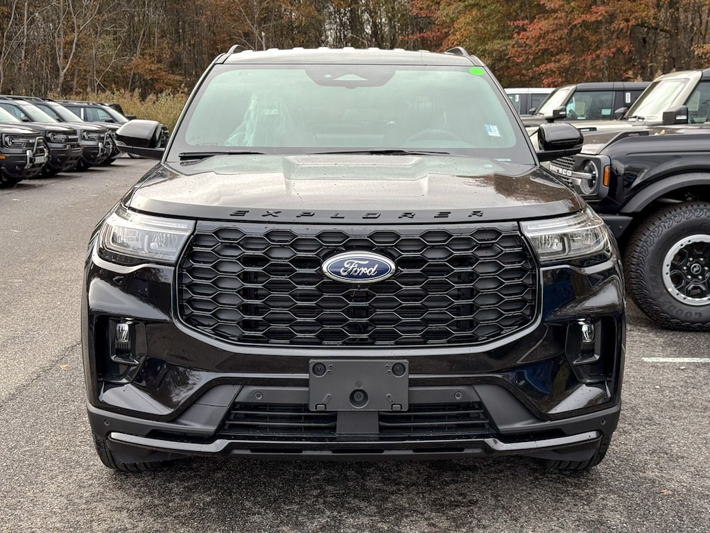 Agate Black Metallic 2026 Ford Explorer ST-Line 4WD 10-Speed Automatic 2.3L EcoBoost I-4 Dealer Detailed, Oil Change, Dealer Inspected, 10 Speakers, 2nd Row Captain's Chairs w/E-Z Entry & Armrest, 3rd row seats: bench, 4-Wheel Disc Brakes, ABS brakes, Air Conditioning, Alloy wheels, AM/FM radio: SiriusXM with 360L, Apple CarPlay/Android Auto, Auto High-beam Headlights, Automatic temperature control, BlueCruise (Equipment + 1-Year + 90-Day Plan), BlueCruise Hardware, Brake assist, Bumpers: body-color, Compass, Delay-off headlights, Driver door bin, Driver vanity mirror, Dual front impact airbags, Dual front side impact airbags, Electronic Stability Control, Emergency communication system: 911 Assist, Equipment Group 300A Standard Package, Exterior Parking Camera Rear, Four wheel independent suspension, Front & 2nd Rows Floor Liners w/Carpet Floor Mats, Front anti-roll bar, Front Bucket Seats, Front Center Armrest, Front dual zone A/C, Front fog lights, Front License Plate Bracket, Front reading lights, Fully automatic headlights, Garage door transmitter, Heated door mirrors, Heated front seats, Heated steering wheel, Heated Unique Cloth Captain's Chairs, Illuminated entry, Knee airbag, Leather steering wheel, Low tire pressure warning, Navigation System, Occupant sensing airbag, Outside temperature display, Overhead airbag, Overhead console, Panic alarm, Passenger door bin, Passenger vanity mirror, Power door mirrors, Power driver seat, Power Liftgate, Power passenger seat, Power steering, Power windows, Radio: B&O Sound System by Bang & Olufsen, Rear air conditioning, Rear anti-roll bar, Rear reading lights, Rear window defroster, Rear window wiper, Remote keyless entry, Security system, Speed control, Speed-sensing steering, Speed-Sensitive Wipers, Split folding rear seat, Spoiler, Steering wheel mounted audio controls, Tachometer, Telescoping steering wheel, Tilt steering wheel, Traction control, Trip computer, Variably intermittent wipers, Wheels: 20" Ebony-Painted Machined Aluminum.