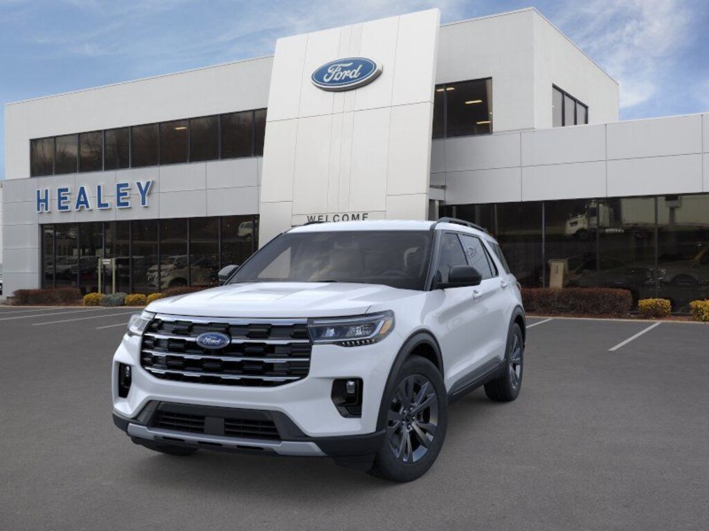 Space White Metallic 2026 Ford Explorer Active 4WD 10-Speed Automatic 2.3L EcoBoost I-4 Dealer Detailed, Oil Change, Dealer Inspected, 2nd Row 35/30/35 Bench with E-Z Entry and Armrest, 3rd row seats: bench, 4-Wheel Disc Brakes, 6 Speakers, ABS brakes, Air Conditioning, Alloy wheels, AM/FM radio: SiriusXM with 360L, AM/FM Stereo, Apple CarPlay/Android Auto, Auto High-beam Headlights, Automatic temperature control, Brake assist, Bumpers: body-color, Compass, Delay-off headlights, Driver door bin, Driver vanity mirror, Dual front impact airbags, Dual front side impact airbags, Electronic Stability Control, Emergency communication system: 911 Assist, Exterior Parking Camera Rear, Four wheel independent suspension, Front and Second Rows Floor Liners Without Floor Mats, Front anti-roll bar, Front Bucket Seats, Front Center Armrest, Front dual zone A/C, Front License Plate Bracket, Front reading lights, Fully automatic headlights, Heated door mirrors, Illuminated entry, Knee airbag, Low tire pressure warning, Navigation System, Occupant sensing airbag, Outside temperature display, Overhead airbag, Overhead console, Panic alarm, Passenger door bin, Passenger vanity mirror, Power door mirrors, Power driver seat, Power steering, Power windows, Rear air conditioning, Rear anti-roll bar, Rear reading lights, Rear window defroster, Rear window wiper, Remote keyless entry, Security system, Speed control, Speed-sensing steering, Speed-Sensitive Wipers, Split folding rear seat, Spoiler, Steering wheel mounted audio controls, Tachometer, Telescoping steering wheel, Tilt steering wheel, Traction control, Trip computer, Variably intermittent wipers, Wheels: 18" Sparkle Silver-Painted Aluminum.