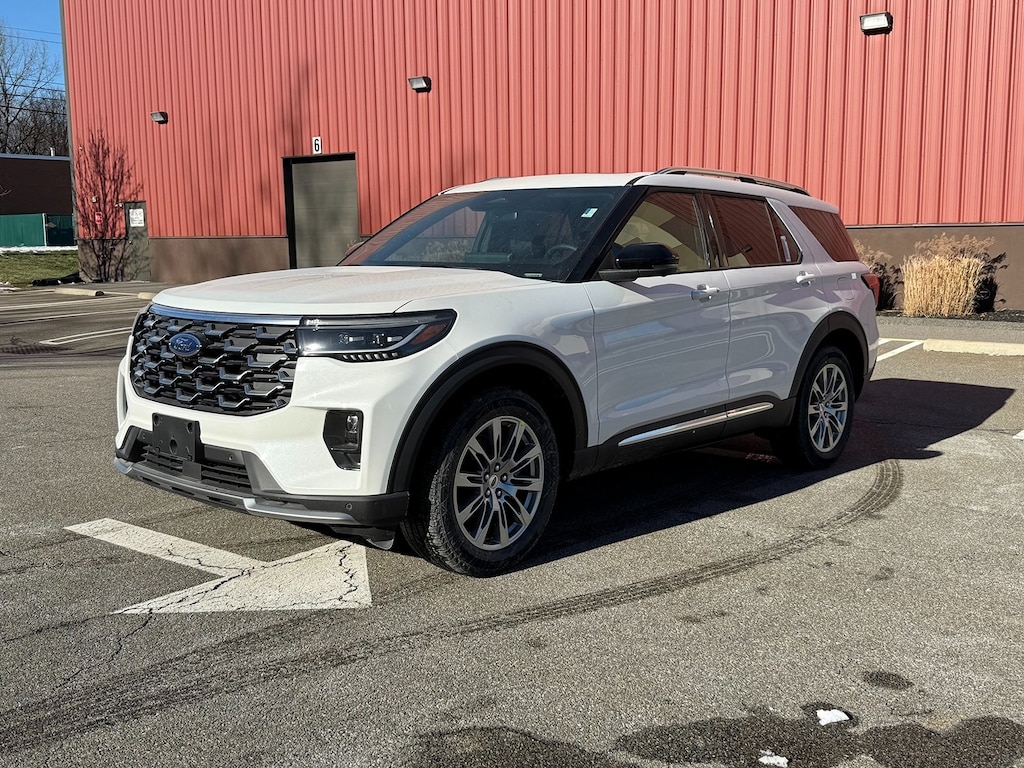 Star White Metallic Tri-Coat 2026 Ford Explorer Platinum 4WD 10-Speed Automatic 2.3L EcoBoost I-4 Fresh Oil Change, 14 Speakers, 2nd Row 35/30/35 Bench with E-Z Entry and Armrest, 3rd row seats: bench, 4-Wheel Disc Brakes, ABS brakes, ActiveX Trimmed Captain's Chairs, Air Conditioning, Alloy wheels, AM/FM radio: SiriusXM with 360L, Apple CarPlay/Android Auto, Auto High-beam Headlights, Auto-dimming door mirrors, Auto-dimming Rear-View mirror, Automatic temperature control, BlueCruise Equipped (1-Time Purchase), Brake assist, Bumpers: body-color, Compass, Delay-off headlights, Driver door bin, Driver vanity mirror, Dual front impact airbags, Dual front side impact airbags, Electronic Stability Control, Emergency communication system: 911 Assist, Equipment Group 600A Standard Package, Exterior Parking Camera Rear, Ford Connectivity Package (one-Time Purchase - 7 Years), Four wheel independent suspension, Front and 2nd Rows Floor Liners with Carper Floor Mats, Front anti-roll bar, Front Bucket Seats, Front Center Armrest, Front dual zone A/C, Front fog lights, Front License Plate Bracket, Front reading lights, Fully automatic headlights, Garage door transmitter, Heated door mirrors, Heated front seats, Heated rear seats, Heated steering wheel, Illuminated entry, Internet access capable: FordPass Connect 5G, Knee airbag, Leather steering wheel, Low tire pressure warning, Memory seat, Navigation System, Occupant sensing airbag, Outside temperature display, Overhead airbag, Overhead console, Panic alarm, Panoramic Fixed Glass Roof with Power Shade, Passenger door bin, Passenger vanity mirror, Power door mirrors, Power driver seat, Power Liftgate, Power passenger seat, Power steering, Power windows, Radio data system, Radio: B&O Sound System by Bang & Olufsen with HD, Rain sensing wipers, Rear air conditioning, Rear anti-roll bar, Rear reading lights, Rear window defroster, Rear window wiper, Remote keyless entry, Security system, Speed control, Speed-sensing steering, Speed-Sensitive Wipers, Split folding rear seat, Spoiler, Steering wheel mounted audio controls, Tachometer, Telescoping steering wheel, Tilt steering wheel, Traction control, Trip computer, Turn signal indicator mirrors, Variably intermittent wipers, Ventilated front seats, Wheels: 20" Luster Nickel-Painted Aluminum.