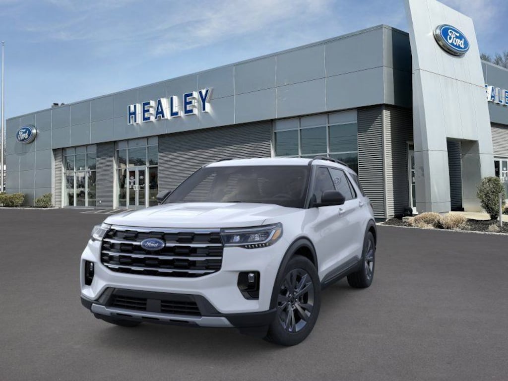 Space White Metallic 2026 Ford Explorer Active 4WD 10-Speed Automatic 2.3L EcoBoost I-4 Fresh Oil Change, 3rd row seats: bench, 4-Wheel Disc Brakes, 6 Speakers, ABS brakes, Air Conditioning, Alloy wheels, AM/FM radio: SiriusXM with 360L, AM/FM Stereo, Apple CarPlay/Android Auto, Auto High-beam Headlights, Automatic temperature control, Brake assist, Bumpers: body-color, Compass, Delay-off headlights, Driver door bin, Driver vanity mirror, Dual front impact airbags, Dual front side impact airbags, Electronic Stability Control, Emergency communication system: 911 Assist, Exterior Parking Camera Rear, Ford Connectivity Package (one-Time Purchase - 7 Years), Four wheel independent suspension, Front and Second Rows Floor Liners Without Floor Mats, Front anti-roll bar, Front Bucket Seats, Front Center Armrest, Front dual zone A/C, Front License Plate Bracket, Front reading lights, Fully automatic headlights, Heated door mirrors, Illuminated entry, Knee airbag, Low tire pressure warning, Navigation System, Occupant sensing airbag, Outside temperature display, Overhead airbag, Overhead console, Panic alarm, Passenger door bin, Passenger vanity mirror, Power door mirrors, Power driver seat, Power steering, Power windows, Rear air conditioning, Rear anti-roll bar, Rear reading lights, Rear window defroster, Rear window wiper, Remote keyless entry, Security system, Speed control, Speed-sensing steering, Speed-Sensitive Wipers, Split folding rear seat, Spoiler, Steering wheel mounted audio controls, Tachometer, Telescoping steering wheel, Tilt steering wheel, Traction control, Trip computer, Variably intermittent wipers, Wheels: 18" Sparkle Silver-Painted Aluminum.