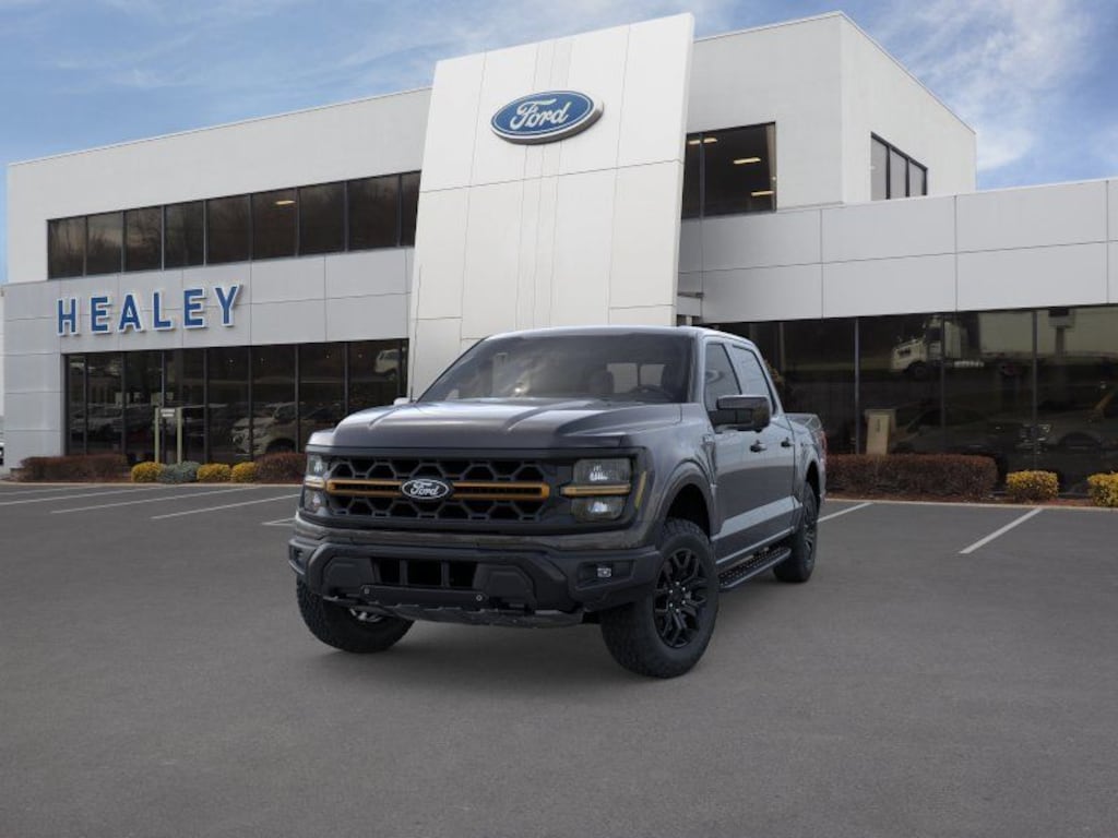 Agate Black Metallic 2026 Ford F-150 Tremor 4WD 10-Speed Automatic 5.0L V8 Dealer Detailed, Oil Change, Dealer Inspected, 2nd Row Heated Seats, 4 Pickup Box Tie-Down Plates, 4-Wheel Disc Brakes, 8 Speakers, ABS brakes, Adjustable pedals, Air Conditioning, Alloy wheels, AM/FM radio: SiriusXM with 360L, Auto High-beam Headlights, Auto-Dimming Rear-View Mirror, Auto-dimming Rear-View mirror, Automatic temperature control, Bed Utility Package, BlueCruise (equipment + 1 Year + 90-Day Plan), Brake assist, Bumpers: body-color, Compass, Console Worksurface, Delay-off headlights, Driver door bin, Driver vanity mirror, Driver's Side SecuriCode Keyless-Entry Keypad, Dual front impact airbags, Dual front side impact airbags, Electronic Locking with 3.73 Axle Ratio, Electronic Stability Control, Emergency communication system: SYNC 4 911 Assist, Equipment Group 402A High, Ford Connectivity Package (1-Year Included), Front anti-roll bar, Front Axle with Torsen Differential, Front Bucket Seats, Front Center Armrest, Front dual zone A/C, Front fog lights, Front License Plate Bracket, Front reading lights, Front wheel independent suspension, Fully automatic headlights, GVWR: 7,050 lbs Payload Package, Heated door mirrors, Heated front seats, Heated Steering Wheel, Illuminated entry, Integrated Trailer Brake Controller, Internet access capable: 5G Modem - Ford Connectivity Package, LED Box Lighting, LED Taillamps, Low tire pressure warning, Media Bin Door, Mobile Office Package, Modular Front Bumper and Carbon Black Rear Bumper, Navigation system: Connected Navigation, Occupant sensing airbag, Outside temperature display, Overhead airbag, Overhead console, Panic alarm, Partitioned Lockable Rear Storage, Passenger door bin, Passenger vanity mirror, Power door mirrors, Power driver seat, Power Glass Heated Sideview Mirrors, Power passenger seat, Power steering, Power Tailgate, Power windows, Power-Adjustable Pedals with Memory, Radio data system, Radio: B&O Sound System by Bang and Olufsen, Radio: B&O Unleashed Sound System by Bang & Olufsen, Rain-Sensing Wipers, Rear reading lights, Rear step bumper, Rear window defroster, Remote keyless entry, Security system, Speed control, Split folding rear seat, Steering wheel mounted audio controls, SYNC 4 with Enhanced Voice Recognition, Tachometer, Tailgate Step with Work Surface, Telescoping steering wheel, Tilt steering wheel, Tough Bed Spray-in Bedliner, Tow/Haul Package, Traction control, Trip computer, Turn signal indicator mirrors, Twin Panel Moonroof, Unique Sport Cloth 40/Console/40 Power Front Seat, Unique Tremor Leather-Trimmed Seats, Universal Garage Door Opener, Variably intermittent wipers, Wheels: 18" Alloy with Dark Matte Finish, Wireless Charging.