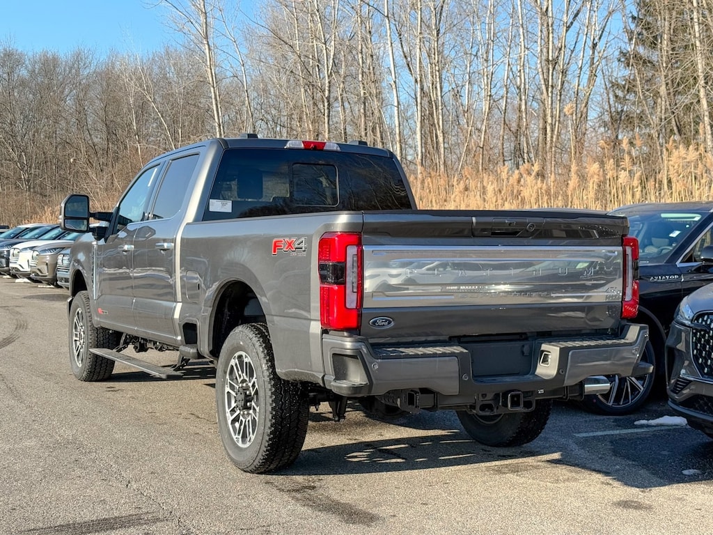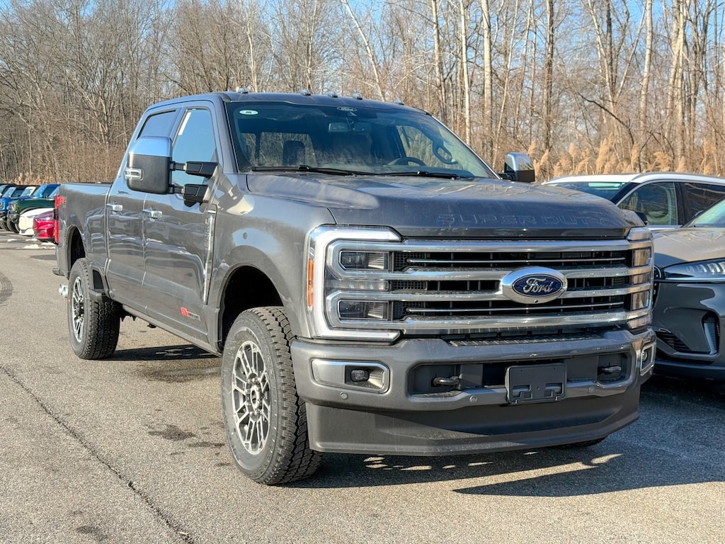 Carbonized Gray Metallic 2026 Ford F-350SD Platinum 4WD 10-Speed Automatic 6.7L High Output Power Stroke V8 Diesel Dealer Detailed, Oil Change, Dealer Inspected, 4-Wheel Disc Brakes, ABS brakes, Adjustable pedals, Air Conditioning, Alloy wheels, AM/FM radio: SiriusXM with 360L, Auto High-beam Headlights, Auto-dimming Rear-View mirror, Automatic temperature control, Brake assist, Compass, Delay-off headlights, Driver door bin, Driver vanity mirror, Dual front impact airbags, Dual front side impact airbags, Electronic Stability Control, Emergency communication system: SYNC 4 911 Assist, Flow-Through Console, Ford Connectivity Package (1-Year Included), Front anti-roll bar, Front Bucket Seats, Front Center Armrest, Front dual zone A/C, Front fog lights, Front License Plate Bracket, Front reading lights, Fully automatic headlights, FX4 Off-Road Package, Garage door transmitter, Heated door mirrors, Heated front seats, Heated rear seats, Heated steering wheel, Hill Descent Control, Illuminated entry, Internet access capable: 5G Modem - Ford Connectivity Package, LED Roof Clearance Lights, Low tire pressure warning, Memory seat, Navigation system: Connected Navigation, Off-Road Specifically Tuned Shock Absorbers, Outside temperature display, Overhead airbag, Overhead console, Panic alarm, Passenger door bin, Passenger vanity mirror, Pedal memory, Power door mirrors, Power driver seat, Power passenger seat, Power steering, Power windows, Radio: B&O Unleashed Sound System by Bang & Olufsen, Rain sensing wipers, Rear reading lights, Rear seat center armrest, Rear step bumper, Rear window defroster, Remote keyless entry, Security system, SiriusXM w/360L, Snow Plow Prep Package, Speed control, Split folding rear seat, Steering wheel mounted audio controls, SYNC 4 w/Enhanced Voice Recognition, Tachometer, Telescoping steering wheel, Tilt steering wheel, Tough Bed Spray-In Bedliner, Traction control, Trip computer, Turn signal indicator mirrors, Unique FX4 Off-Road Box Decal, Variably intermittent wipers, Ventilated front seats.