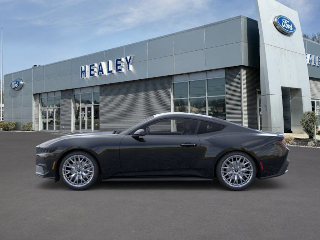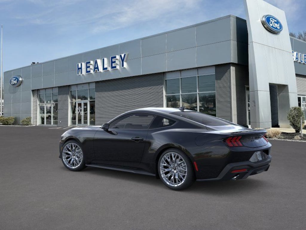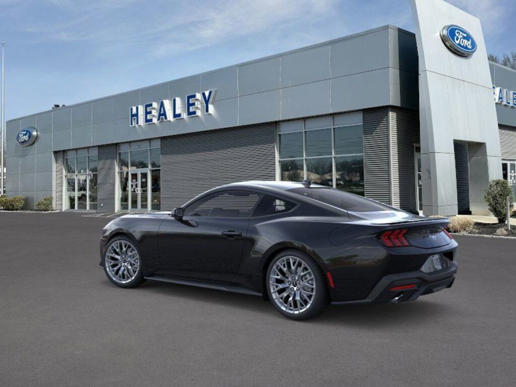 Shadow Black 2026 Ford Mustang EcoBoost Premium RWD 10-Speed Automatic EcoBoost 2.3L I4 GTDi DOHC Turbocharged VCT Fresh Oil Change, 1st Row Carpeted Black Floor Mats, 4-Wheel Disc Brakes, ABS brakes, Air Conditioning, Alloy wheels, AM/FM Stereo, Auto High-beam Headlights, Automatic temperature control, Brake assist, Bumpers: body-color, Compass, Delay-off headlights, Driver door bin, Driver vanity mirror, Dual front impact airbags, Dual front side impact airbags, Electronic Stability Control, Emergency communication system: 911 Assist, Exterior Parking Camera Rear, Ford Connectivity Package (one-Time Purchase - 7 Years), Four wheel independent suspension, Front anti-roll bar, Front Bucket Seats, Front Center Armrest, Front dual zone A/C, Front reading lights, Fully automatic headlights, Illuminated entry, Knee airbag, Leather Shift Knob, Low tire pressure warning, Occupant sensing airbag, Outside temperature display, Overhead airbag, Overhead console, Panic alarm, Passenger door bin, Passenger vanity mirror, Power door mirrors, Power steering, Power windows, Premium Floor Liners Front and Rear (with Carpet Mats), Radio data system, Rain sensing wipers, Rear anti-roll bar, Rear Parking Sensors, Rear window defroster, Remote keyless entry, Speed control, Speed-sensing steering, Speed-Sensitive Wipers, Split folding rear seat, Sport steering wheel, Steering wheel mounted audio controls, SYNC 4, Tachometer, Telescoping steering wheel, Tilt steering wheel, Traction control, Trip computer, Variably intermittent wipers, Voltmeter, Wedge Decklid Spoiler, Wheels: 18" x 8" Painted Shadow Silver Cast Aluminum.