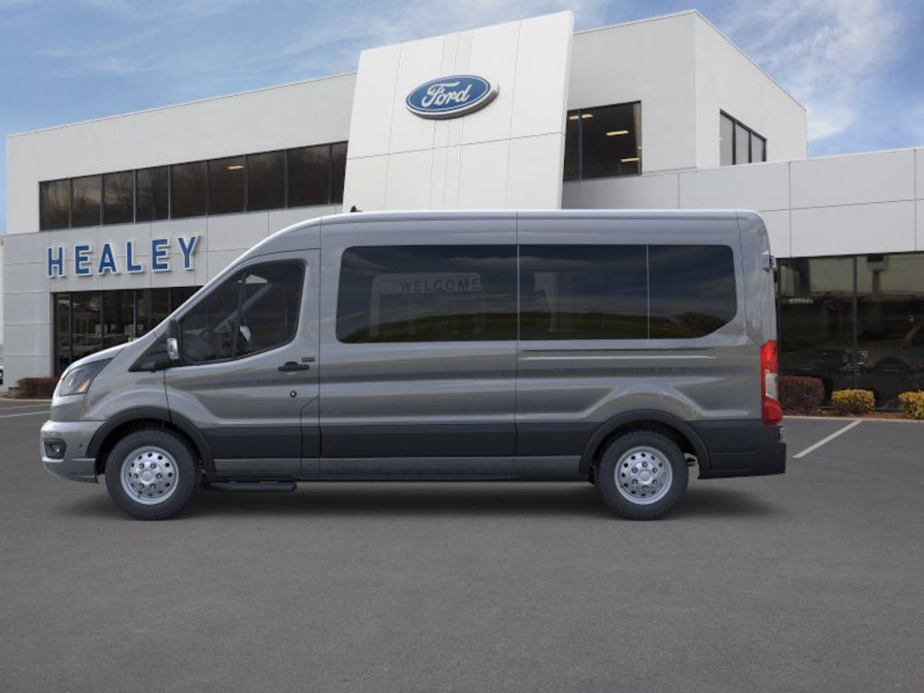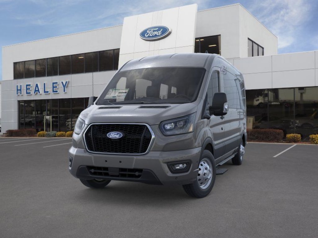 Carbonized Gray Metallic 2026 Ford Transit-350 XLT AWD 10-Speed Automatic with Overdrive EcoBoost 3.5L V6 GTDi DOHC 24V Twin Turbocharged Dealer Detailed, Oil Change, Dealer Inspected, 15-Passenger Seats, 3.73 Limited-Slip Axle Ratio, 3rd row seats: split-bench, 4-Wheel Disc Brakes, 4th-Row Bench Seat, 8 Speakers, ABS brakes, Air Conditioning, Apple CarPlay/Android Auto, Auto High-beam Headlights, Black High-Intensity Discharge (HID) Headlamps, Brake assist, Cloth Front Bucket Seats, Delay-off headlights, Driver door bin, Driver vanity mirror, Driver's Seat Mounted Armrest, Dual AGM Batteries (70 Amp-Hr Each), Dual front impact airbags, Dual front side impact airbags, Electronic Stability Control, Emergency communication system: 911 Assist, Extended Length Passenger Running Board, Ford Connectivity Package (1-Year Included), Front All-Weather Floor Mats, Front anti-roll bar, Front Black Wheel Well Liners, Front Bucket Seats, Front License Plate Bracket, Front Overhead Shelf, Front reading lights, Front wheel independent suspension, Illuminated entry, Keyless Entry Keypad, Large Center Console, Low tire pressure warning, Navigation system: Connected Navigation, Occupant sensing airbag, Overhead airbag, Panic alarm, Passenger door bin, Passenger seat mounted armrest, Passenger vanity mirror, Power door mirrors, Power steering, Power windows, Rain sensing wipers, Rear air conditioning, Rear window defroster, Remote keyless entry, Remote Start, Speed control, Steering wheel mounted audio controls, SYNC 4, Tachometer, Telescoping steering wheel, Tilt steering wheel, Traction control, Variably intermittent wipers, Wheels: 16" Silver Steel with Exposed Lug Nuts.