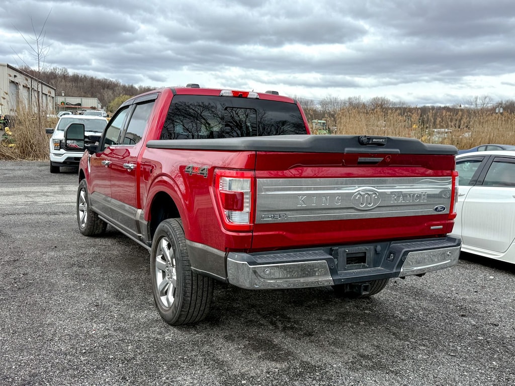 Certified. Brown 2021 Ford F-150 King Ranch 4WD 10-Speed Automatic 3.5L V6 EcoBoost Dealer Detailed, Oil Change, Dealer Inspected, 18" Machined-Aluminum Wheels, 20" Machined-Aluminum Wheels, 360 Degree Camera, 4-Wheel Disc Brakes, 8 Speakers, ABS brakes, Adjustable pedals, Air Conditioning, Alloy wheels, AM/FM radio: SiriusXM with 360L, Auto High-beam Headlights, Auto tilt-away steering wheel, Auto-dimming door mirrors, Auto-dimming Rear-View mirror, Automatic temperature control, Brake assist, Bright Belt Moldings, Chrome Door Handles w/Body-Color Strap, Chrome Skull Caps on Exterior Mirrors, Class IV Trailer Hitch Receiver, Compass, Delay-off headlights, Driver door bin, Driver vanity mirror, Dual front impact airbags, Dual front side impact airbags, Electronic Stability Control, Emergency communication system: SYNC 4 911 Assist, Equipment Group 601A High, Extended Range 36 Gallon Fuel Tank, Exterior Parking Camera Rear, Front anti-roll bar, Front Bucket Seats, Front Center Armrest, Front dual zone A/C, Front fog lights, Front reading lights, Front wheel independent suspension, Fully automatic headlights, Garage door transmitter, Genuine wood console insert, Genuine wood dashboard insert, Genuine wood door panel insert, Heated door mirrors, Heated front seats, Heated rear seats, Heated steering wheel, Illuminated entry, Integrated Trailer Brake Controller, King Ranch Chrome Appearance Package, King Ranch Leather Bucket Seats, LED Sideview Mirror Spotlights, Low tire pressure warning, Max Trailer Tow Package, Memory seat, Multi-Contour Driver & Passenger Seats, Navigation system: Connected Navigation (90-Day Trial), Occupant sensing airbag, Outside temperature display, Overhead airbag, Overhead console, Panic alarm, Passenger door bin, Passenger vanity mirror, Pedal memory, Power door mirrors, Power driver seat, Power passenger seat, Power steering, Power Tailgate, Power Telescoping/Glass/Folding Trailer Tow Mirrors, Power windows, Power-Deployable Running Boards, Pro Trailer Backup Assist, Radio data system, Radio: B&O Sound System by Bang & Olufsen, Radio: B&O Unleashed Sound System by Bang & Olufsen, Rain sensing wipers, Rear reading lights, Rear seat center armrest, Rear step bumper, Rear window defroster, Remote keyless entry, Security system, Speed control, Speed-sensing steering, Split folding rear seat, Steering wheel memory, Steering wheel mounted audio controls, SYNC 4 w/Enhanced Voice Recognition, Tachometer, Telescoping steering wheel, Tilt steering wheel, Traction control, Trip computer, Turn signal indicator mirrors, Variably intermittent wipers, Ventilated front seats, Voltmeter, Wheels: 20" Chrome-Like PVD.