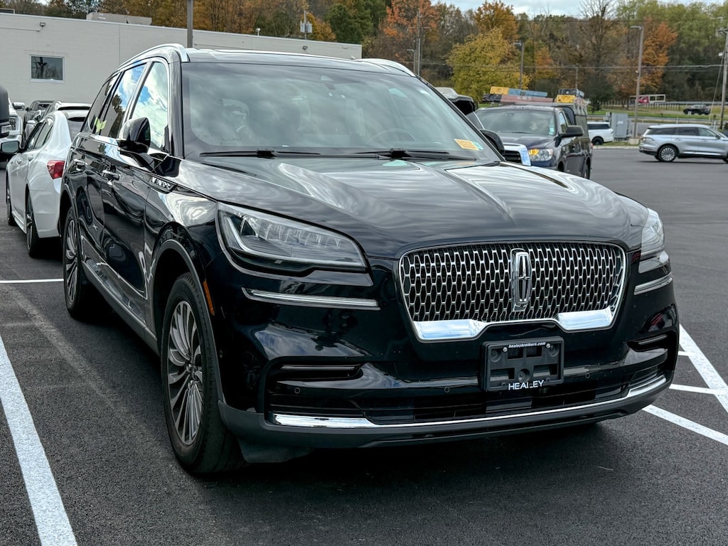 Certified. Infinite Black Metallic Clearcoat 2023 Lincoln Aviator Reserve AWD 10-Speed Automatic 3.0L V6 Dealer Detailed, Oil Change, Dealer Inspected, 14 Speakers, 3.58 Axle Ratio, 3rd row seats: split-bench, 4-Wheel Disc Brakes, ABS brakes, Active Park Assist 2.0, Adaptive suspension, Air Conditioning, All-Weather 1st & 2nd Row Floor Liners, Alloy wheels, AM/FM radio: SiriusXM, Audio memory, Auto Air Refresh, Auto Heated/Ventilated Driver & Passenger Seats, Auto High-beam Headlights, Auto-dimming door mirrors, Auto-dimming Rear-View mirror, Automatic temperature control, Brake assist, Bumpers: body-color, Cargo Area Protector, Compass, Delay-off headlights, Driver door bin, Driver vanity mirror, Dual front impact airbags, Dual front side impact airbags, Electronic Stability Control, Elements Package Plus, Emergency communication system, Enhanced Security System Lite, Equipment Group 201A, Evasive Steering Assist, First Aid Kit, Four wheel independent suspension, Front anti-roll bar, Front Bucket Seats, Front Center Armrest, Front dual zone A/C, Front reading lights, Fully automatic headlights, Garage door transmitter, Hands-Free Liftgate Delete, Head-Up Display, Heated door mirrors, Heated front seats, Heated Steering Wheel, Heated VisioBlade Wipers, Heated/Ventilated 2nd Row Outboard Seats, HVAC memory, Illuminated entry, Intelligent Adaptive Cruise Control, Knee airbag, Leather steering wheel, Lincoln Co-Pilot360 1.5 Plus, Low tire pressure warning, Memory seat, Navigation System, Occupant sensing airbag, Outside temperature display, Overhead airbag, Overhead console, Panic alarm, Passenger door bin, Passenger vanity mirror, Phone As A Key, Power door mirrors, Power driver seat, Power Liftgate, Power moonroof: Panoramic Vista Roof, Power passenger seat, Power steering, Power windows, Premium Lthr Heated/Ventilated Fnt Captain's Chairs, Radio data system, Radio: Revel AM/FM Audio System w/14 Speakers, Rain sensing wipers, Rear air conditioning, Rear anti-roll bar, Rear audio controls, Rear dual zone A/C, Rear reading lights, Rear window defroster, Rear window wiper, Remote keyless entry, Reverse Brake Assist, Roadside Assistance Kit w/Logo (DIO), Security system, SiriusXM Radio, Speed control, Speed-Sensitive Wipers, Split folding rear seat, Spoiler, Steering wheel memory, Steering wheel mounted A/C controls, Steering wheel mounted audio controls, SYNC 3 Communication & Entertainment System, Tachometer, Telescoping steering wheel, Tilt steering wheel, Traction control, Trip computer, Turn signal indicator mirrors, Variably intermittent wipers, Wheels: 20" Bright-Machined Aluminum.